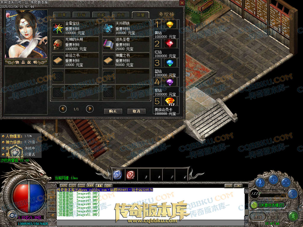 惊涛石:商店购买460个迷失圣卷需要1150W元宝=充值58元(1.6倍神力倍功.所有倍功叠加)