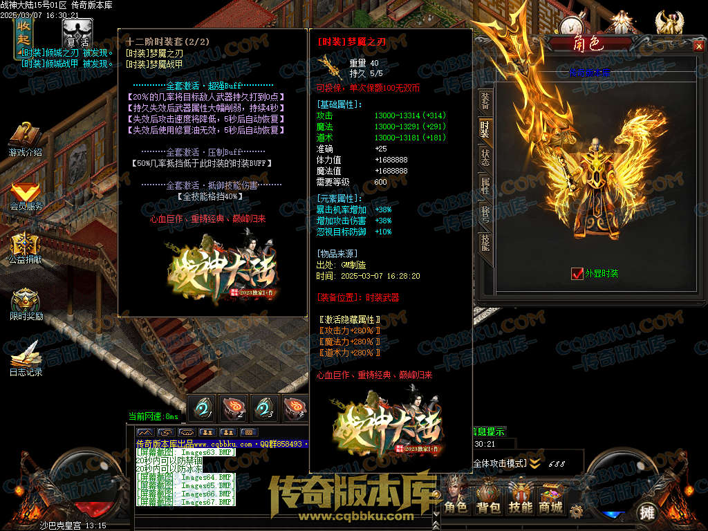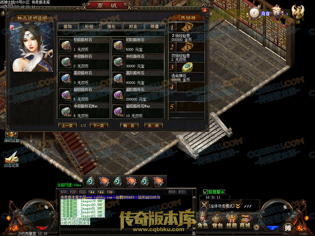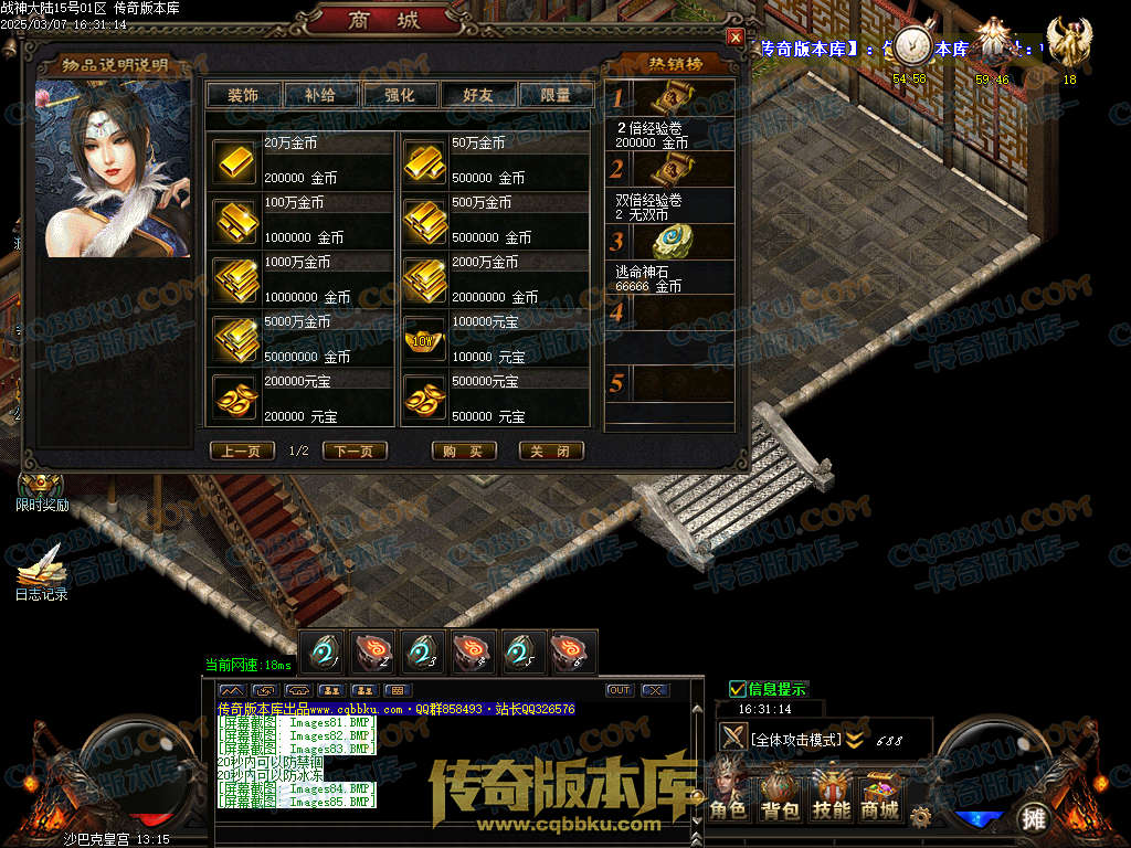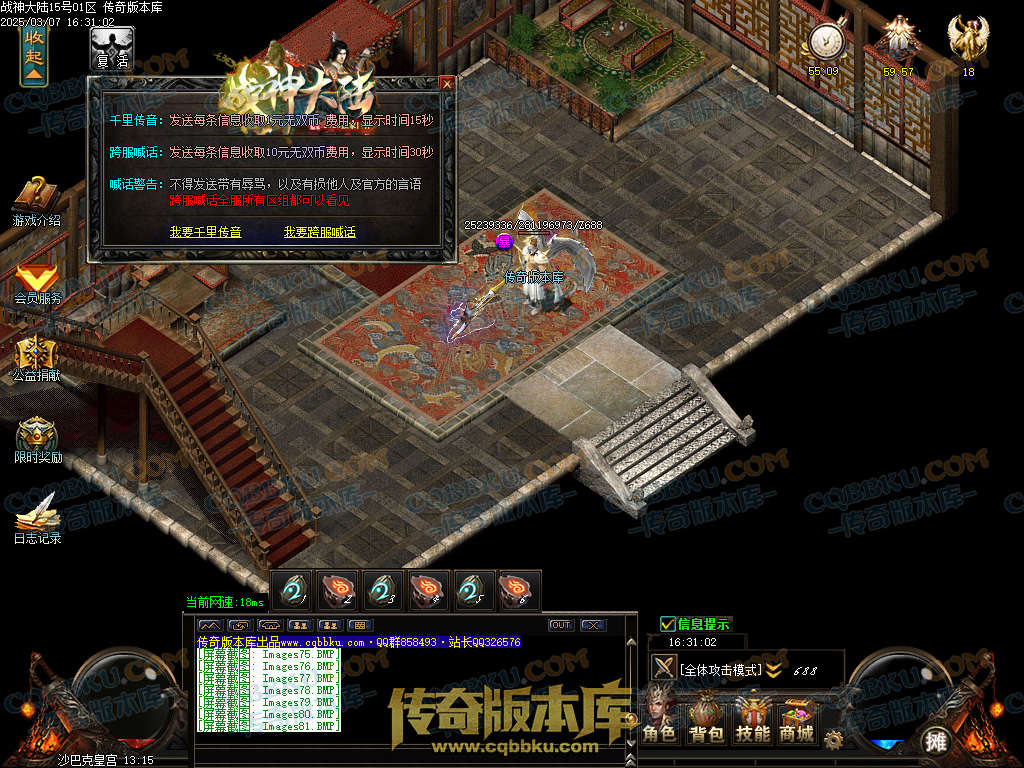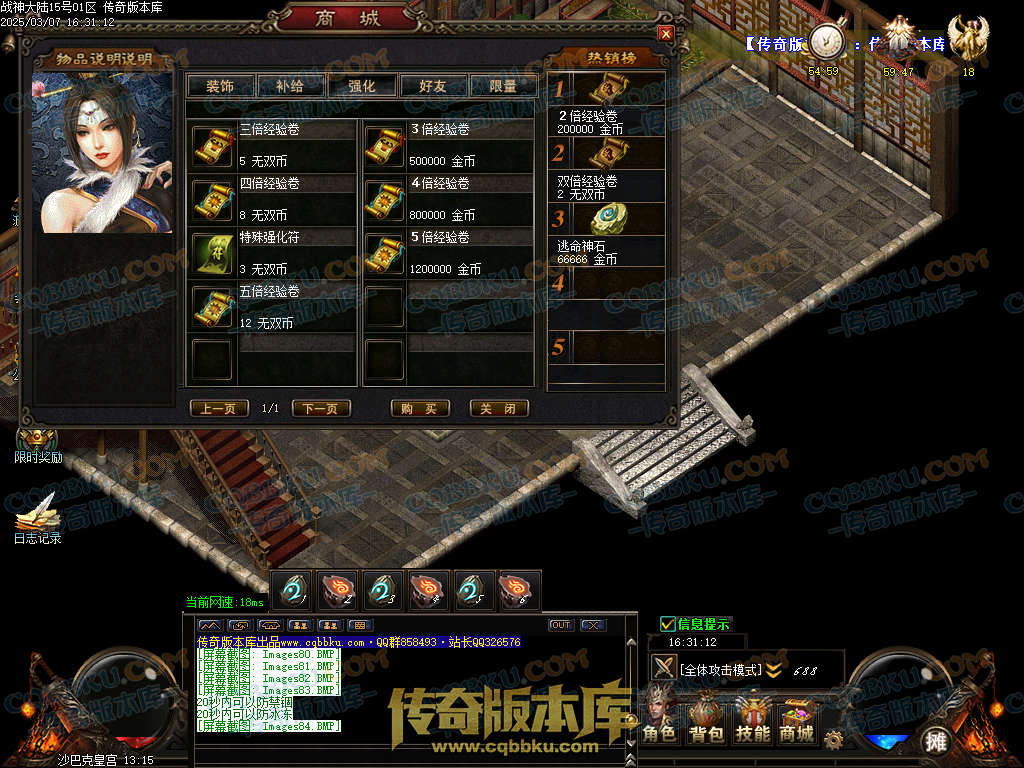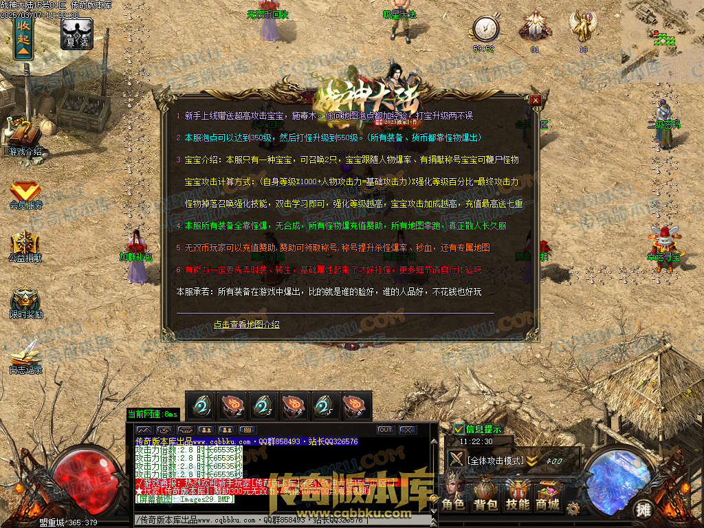 无双战神是神器攻速单职业传奇,带假人功能,带自动拾取功能,带装备光柱特效,插件功能是由ESP支持,带大背包和自动回收系统,此端采用GOM引擎精心耗时制作,更多细节参考详情图文介绍