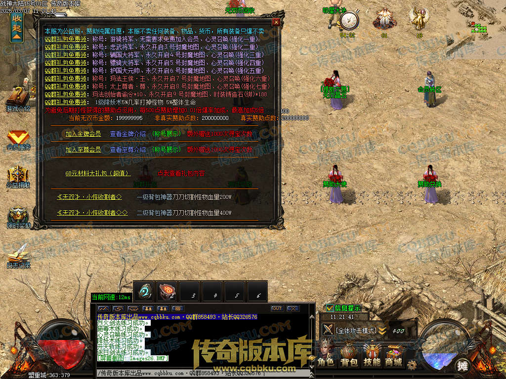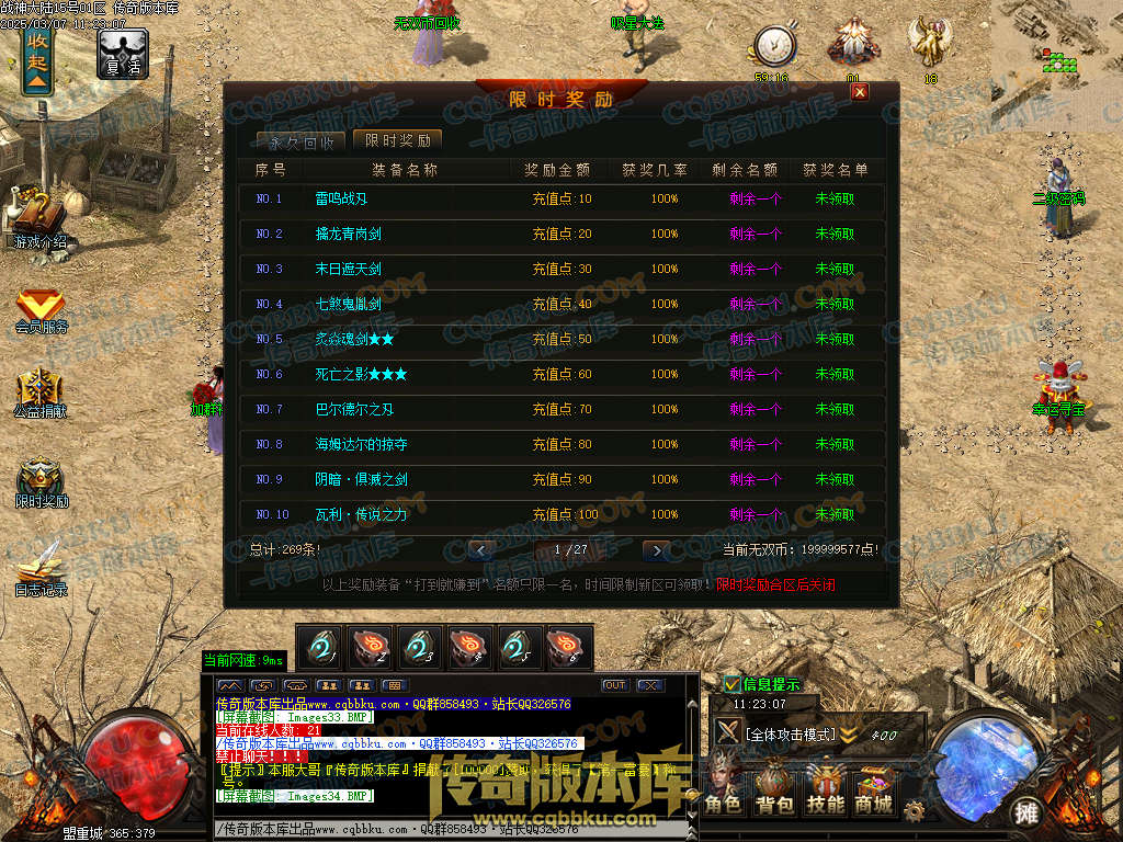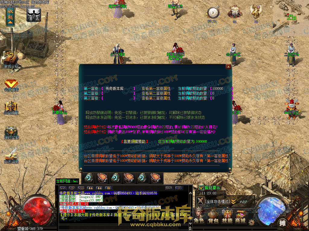 <5.><无双币玩家可以充值赞助,赞助可领取称号,称号提升杀怪爆率、秒血,还有专属地图>