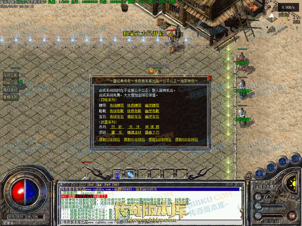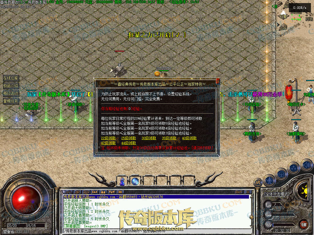 (!)升级达到等级一定要在土城右下角领取升级奖励金币,使用奖励金币开通[狂暴之力],获得小额属性提升。