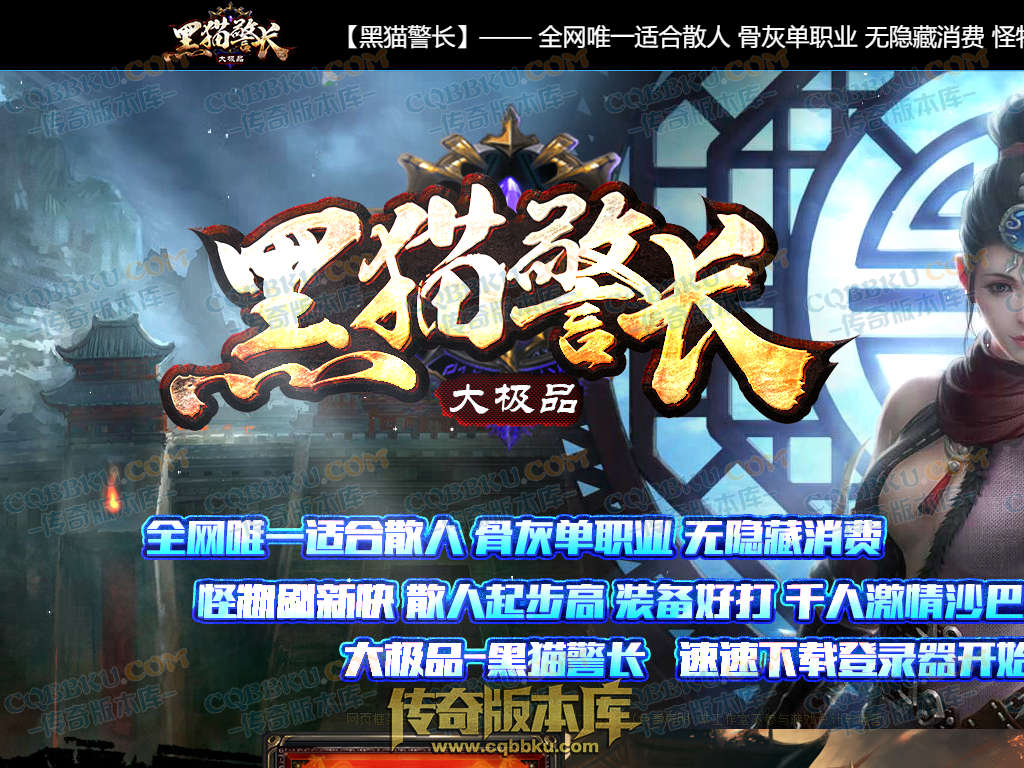 黑猫警长是无赦大极品骨灰单职业传奇,带假人功能,插件功能是由ESP支持,专属地图,第三世界,带大背包和自动回收系统,此端采用GOM引擎精心耗时制作,更多细节参考详情图文介绍