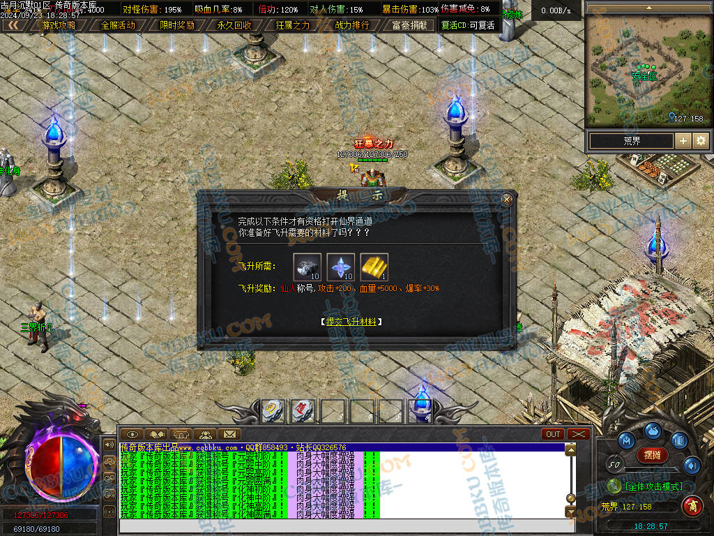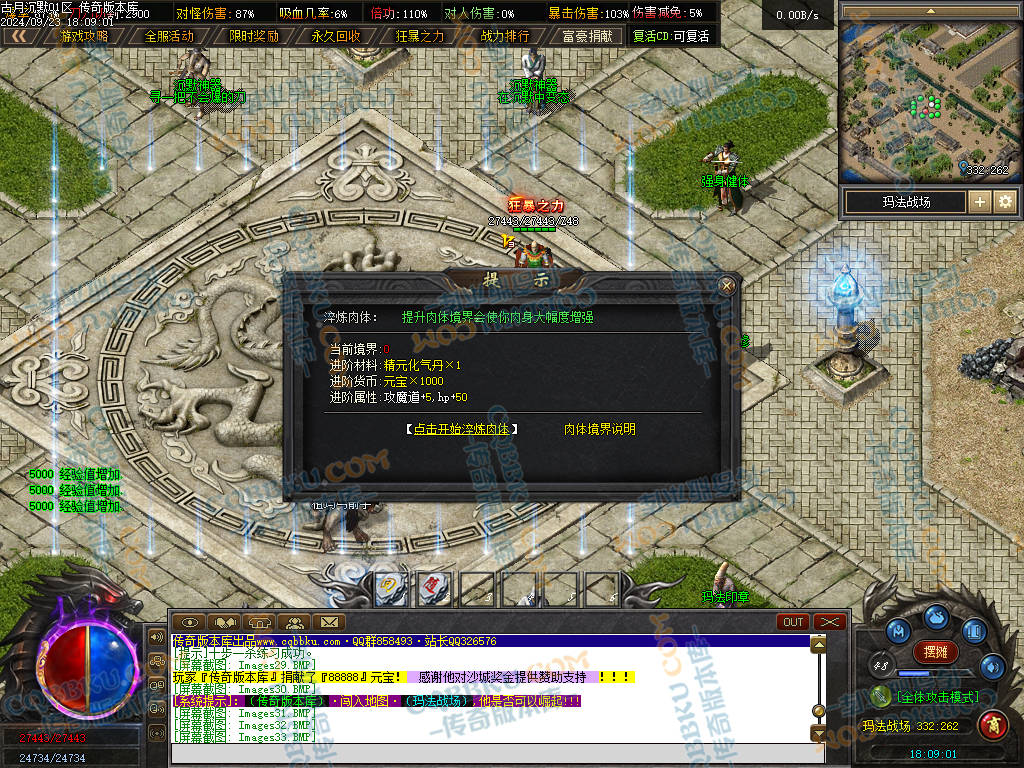 9. 土豪玩家. 1000米..开启 狂暴 沙捐 会员 富豪捐献 土城直接合满时装+转生10转 前往玛法战场 购买 直达C位(传送攻速) 点满 强身健体