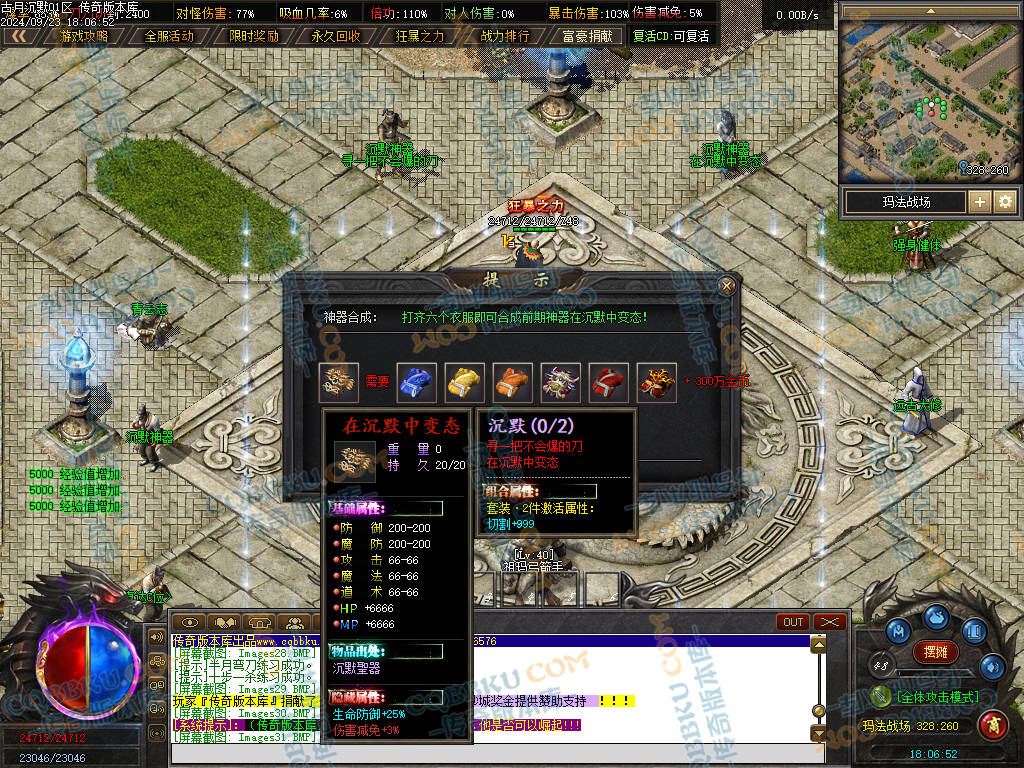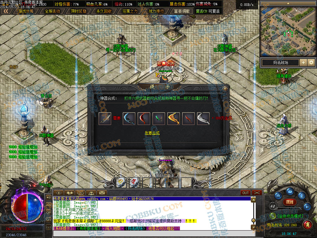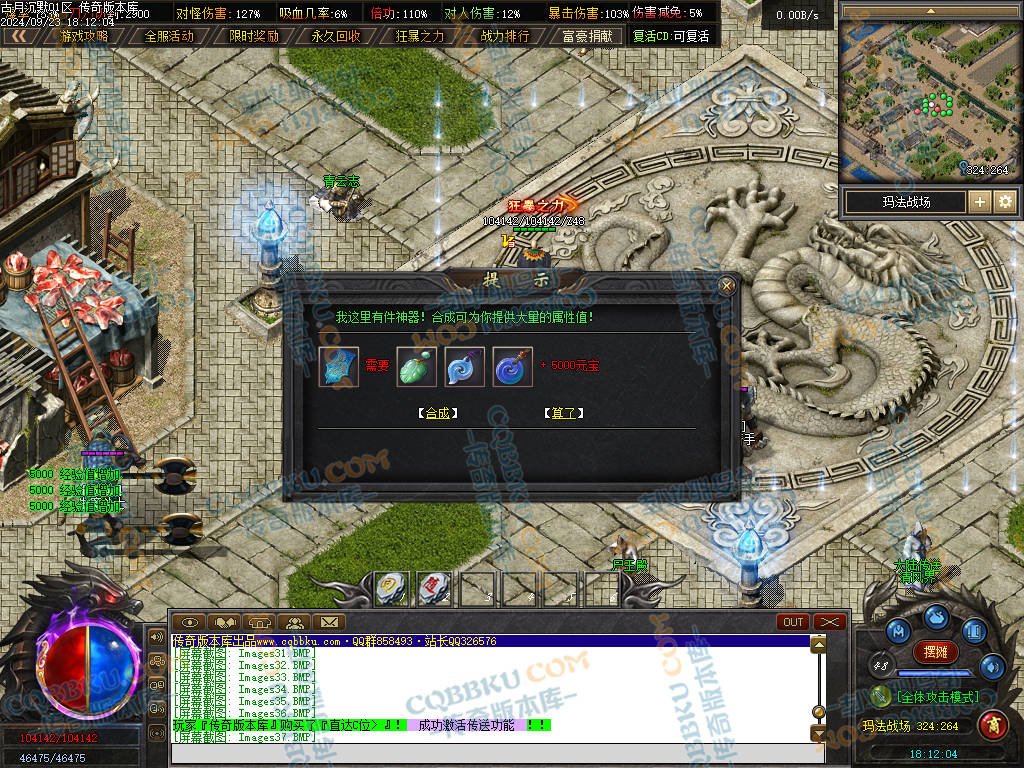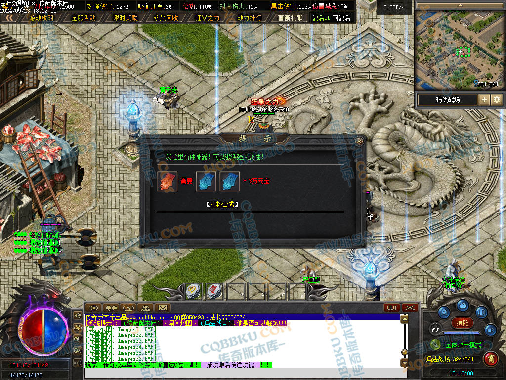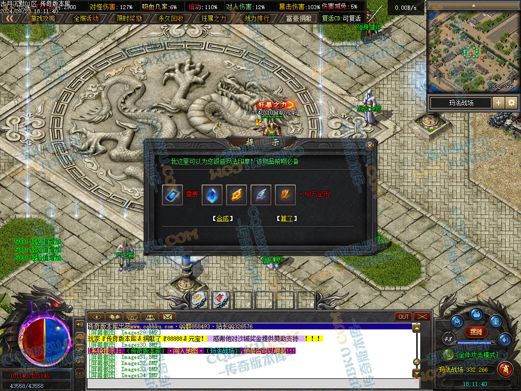 3. 前期 玛法印章,武器 衣服 玛法创世纪 等物品必合,有效提升打怪速度且合成简单,材料好爆.