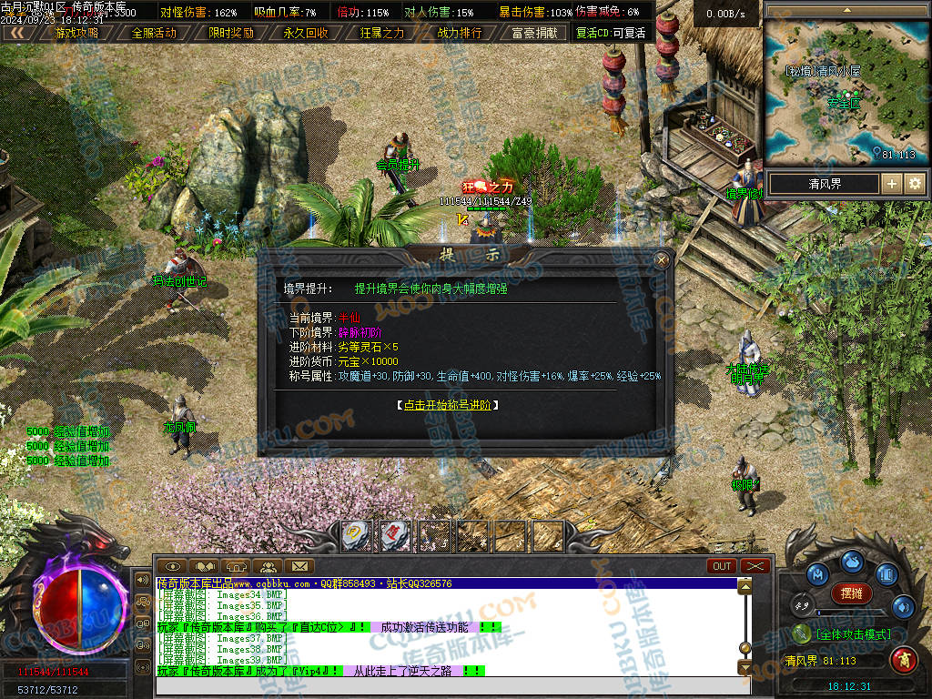 清风界 64:82 打 界主·清风侠客 爆 衣服武器两件专属 [成就]清风豪侠 称号