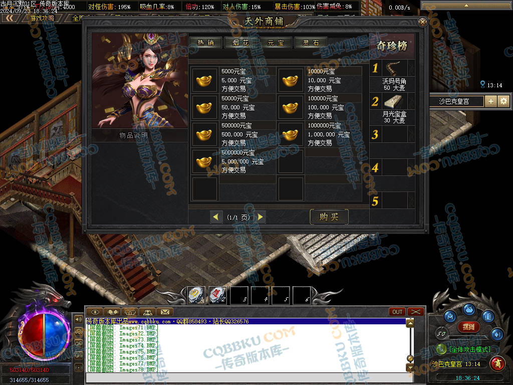 -----------------------充值比例:1R=20大麦+1积分. [1000送200.仅限单笔充值] 大麦可兑换其他货币→(打开背包→便捷服务)请按需兑换.别整多了)---------------------