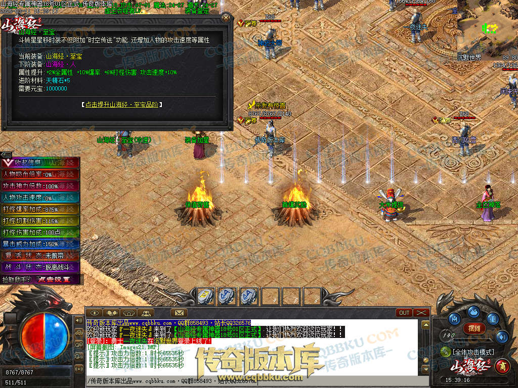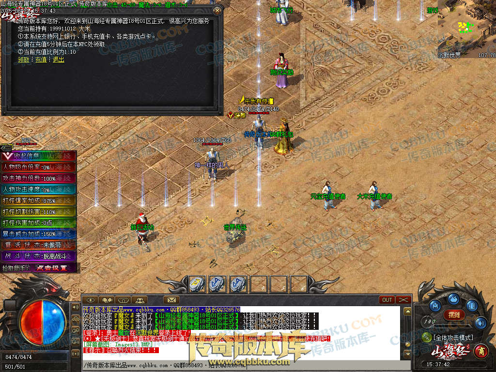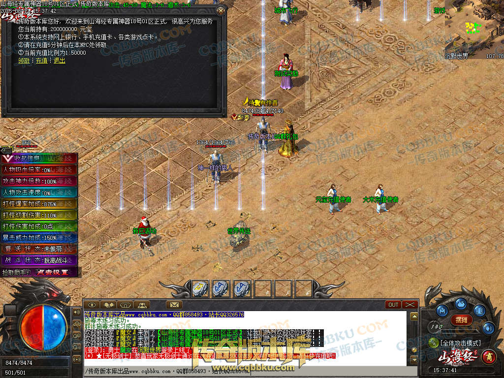 山海经是北冥鞭尸切割单职业传奇,带假人功能,带装备光柱特效,带大背包和自动回收系统,此端采用新GOM引擎精心耗时制作,更多细节参考详情图文介绍