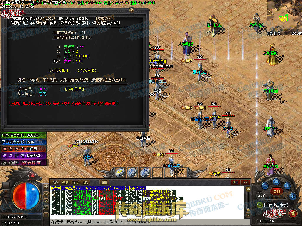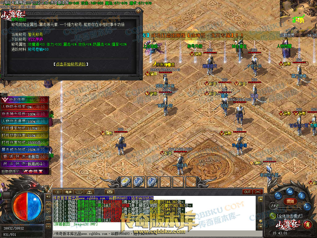 3. 有能力可以将前期称号进阶,全部升满需要4500万元宝[前期追求爆率直接升,称号卷所有怪都有爆出]