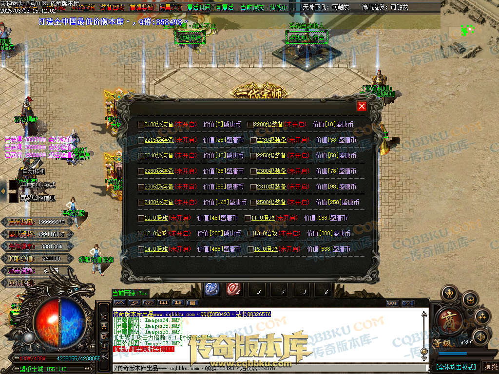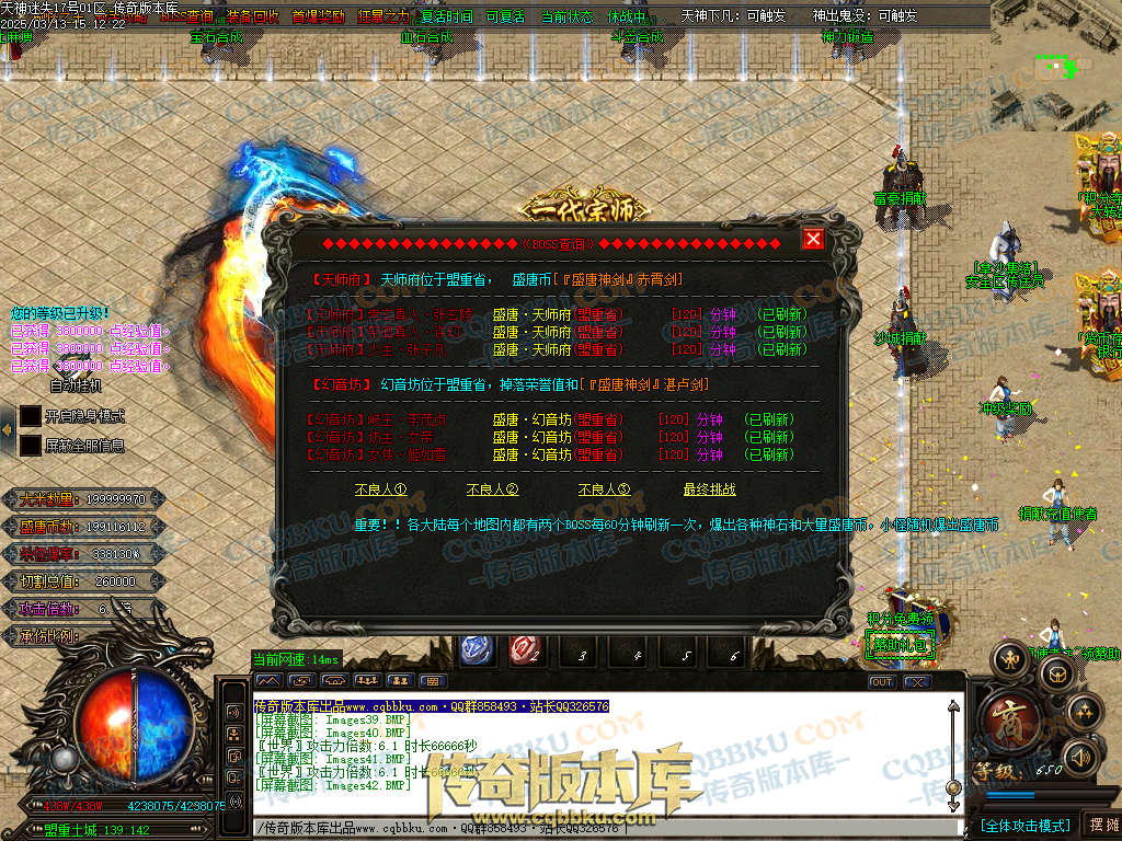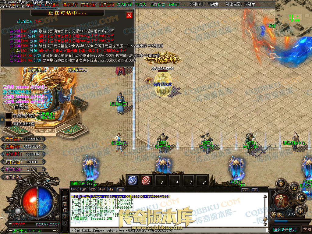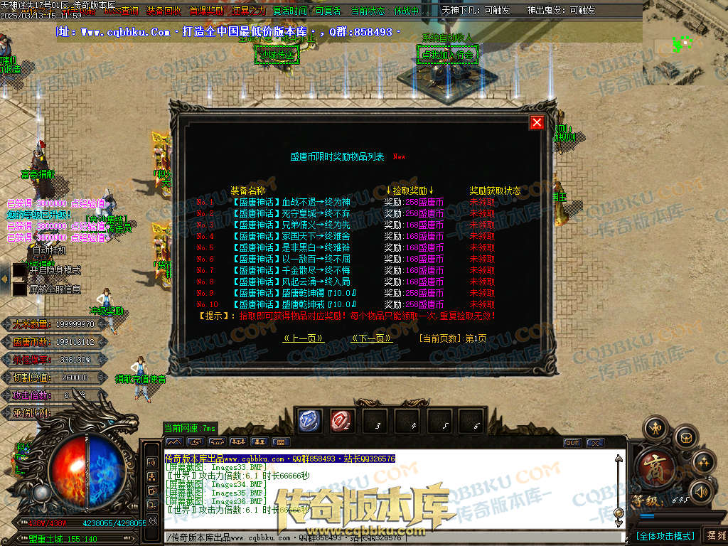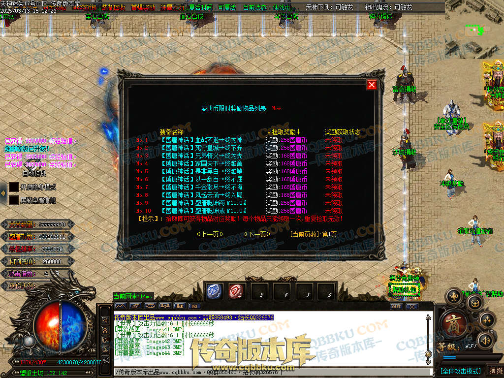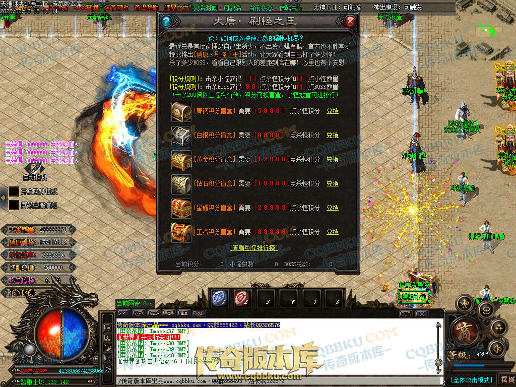 开区活动BOSS必爆大量盛唐币+转区币,转区币打满500、1000可下终极大陆最高爆率地图