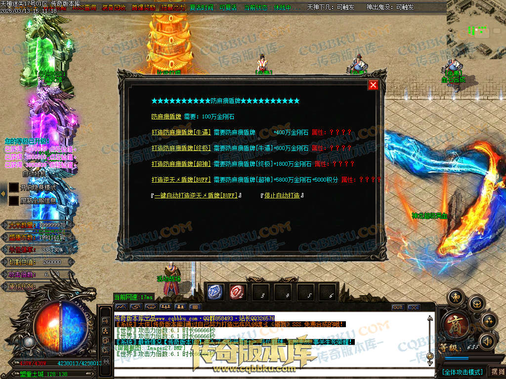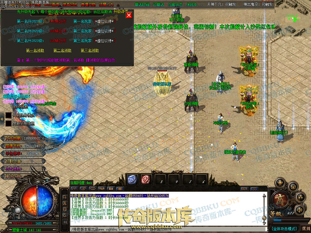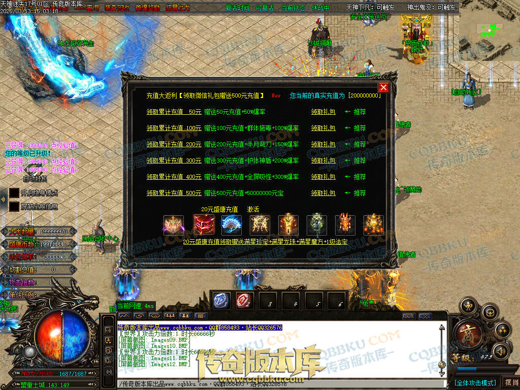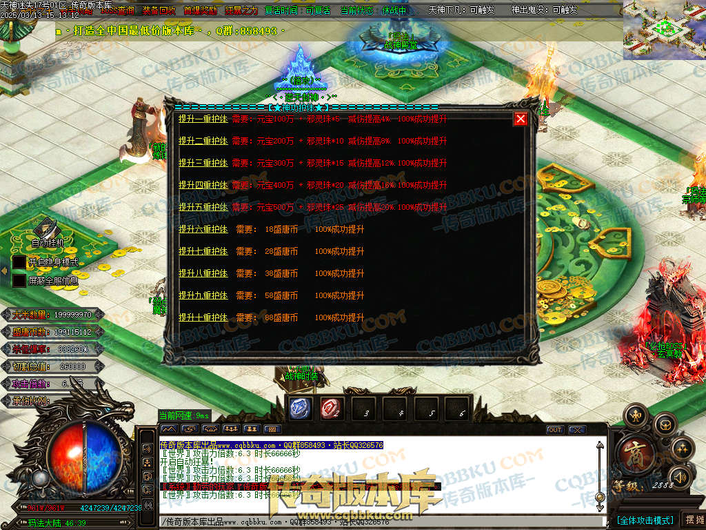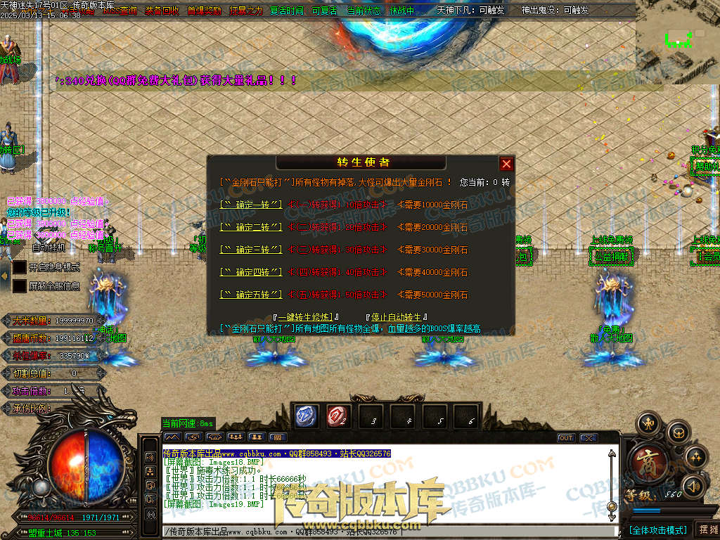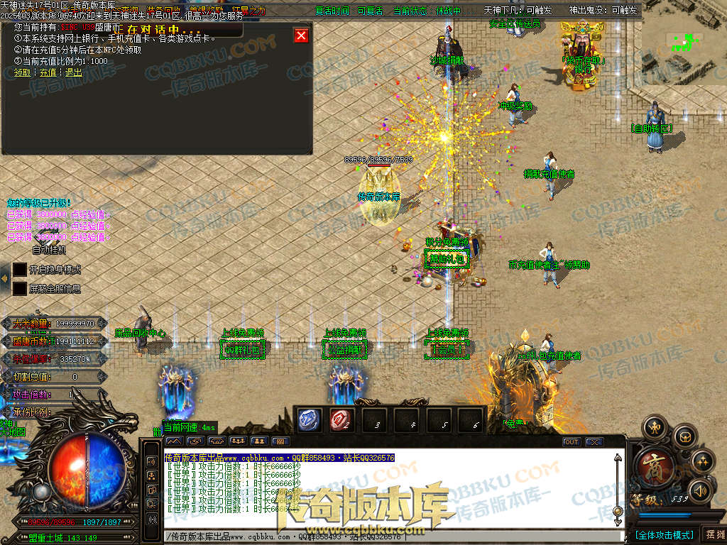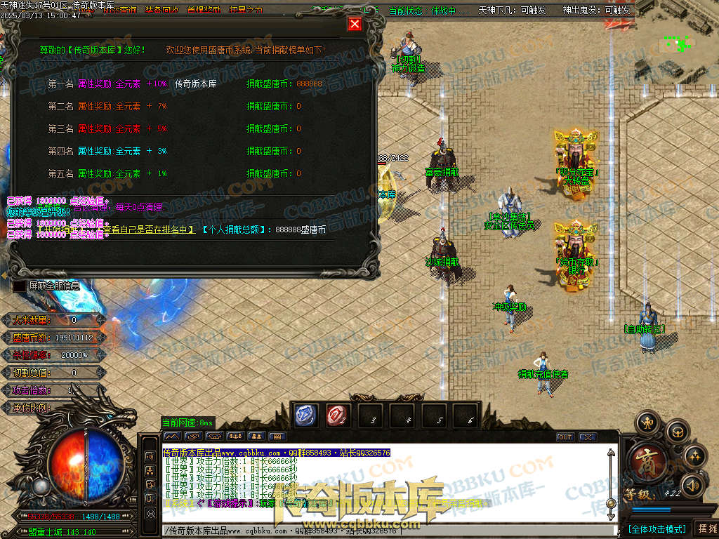 开区活动BOSS必爆大量盛唐币+转区币,转区币打满500、1000可下终极大陆最高爆率地图