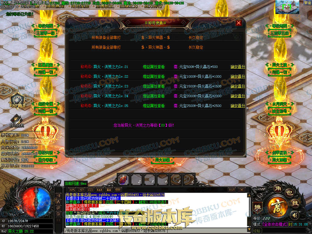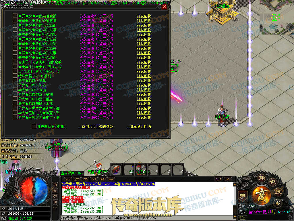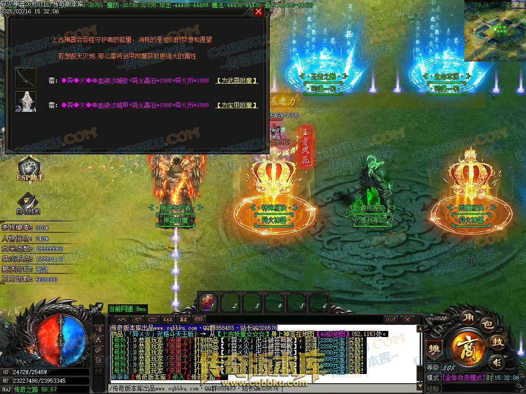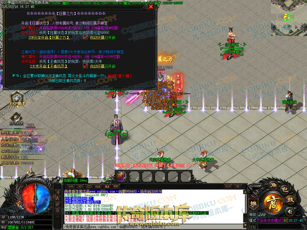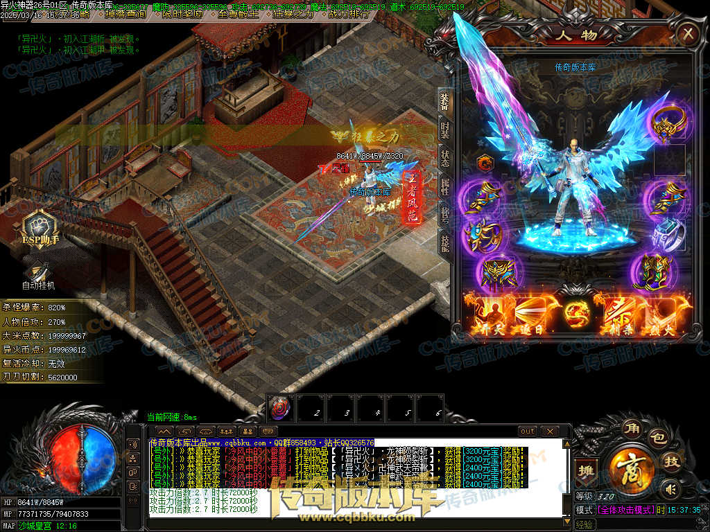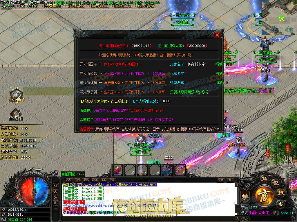 异火神器是神器新篇章无限刀单职业传奇,带假人功能,插件功能是由ESP支持,带大背包和自动回收系统,此端采用GOM引擎精心耗时制作,更多细节参考详情图文介绍