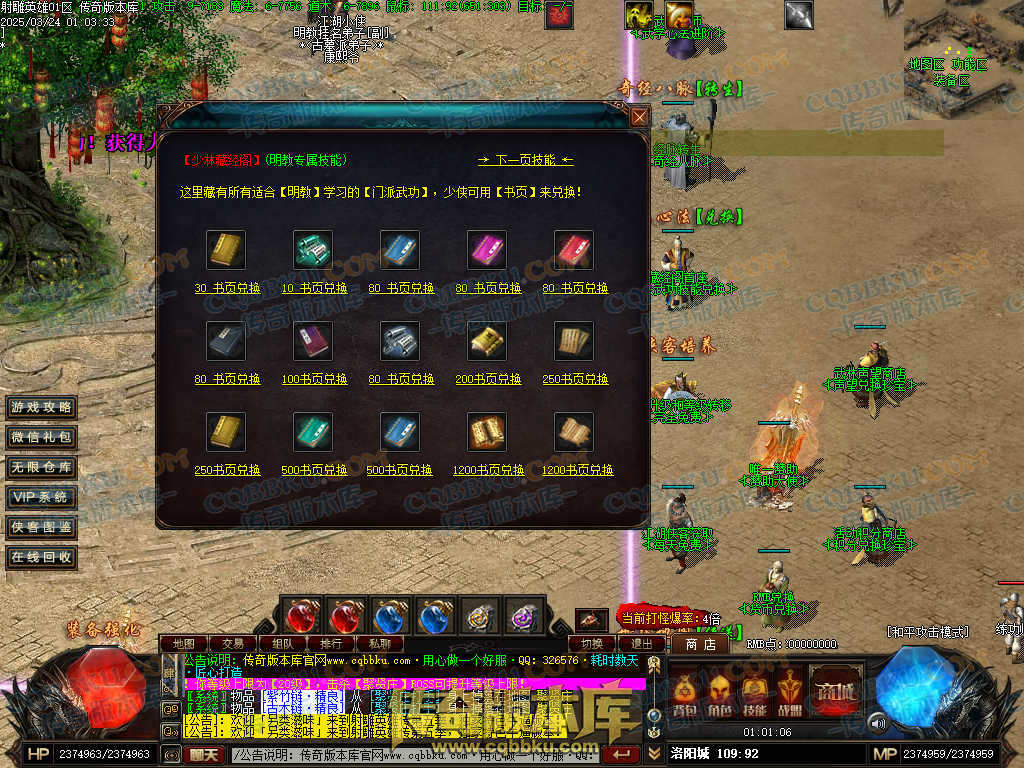 01-459独家九大门派射雕英雄传传奇版本-带假人-光柱-9大副门派-百种BUFF-奇经八脉-十四天书 | ||
