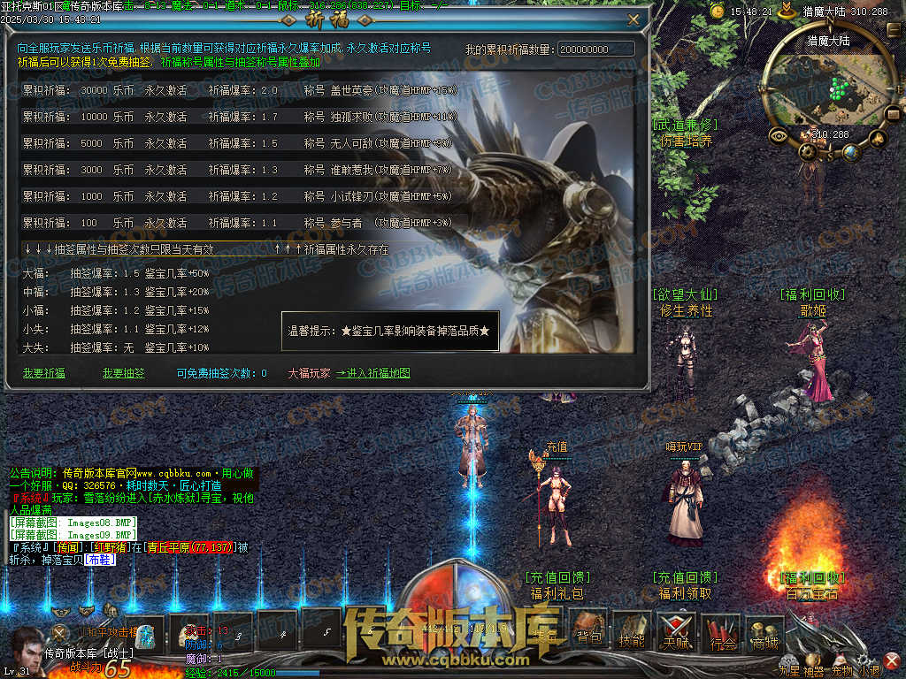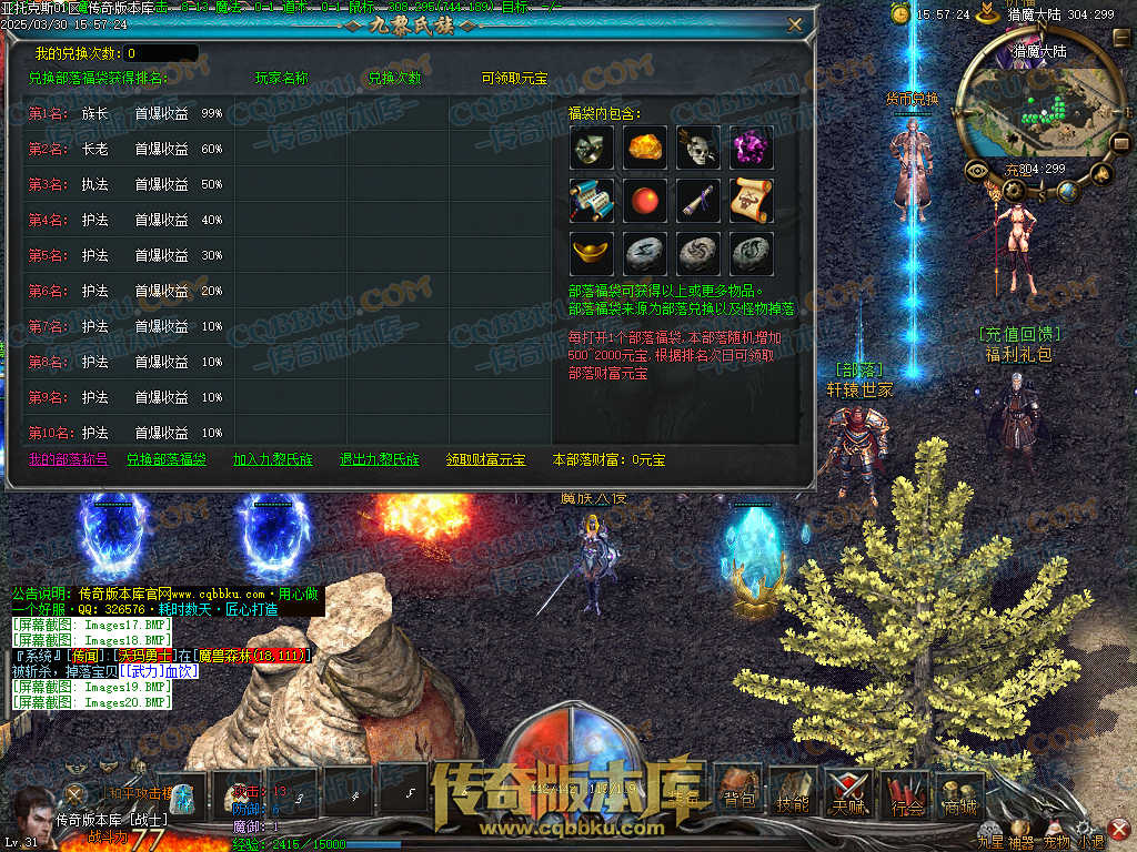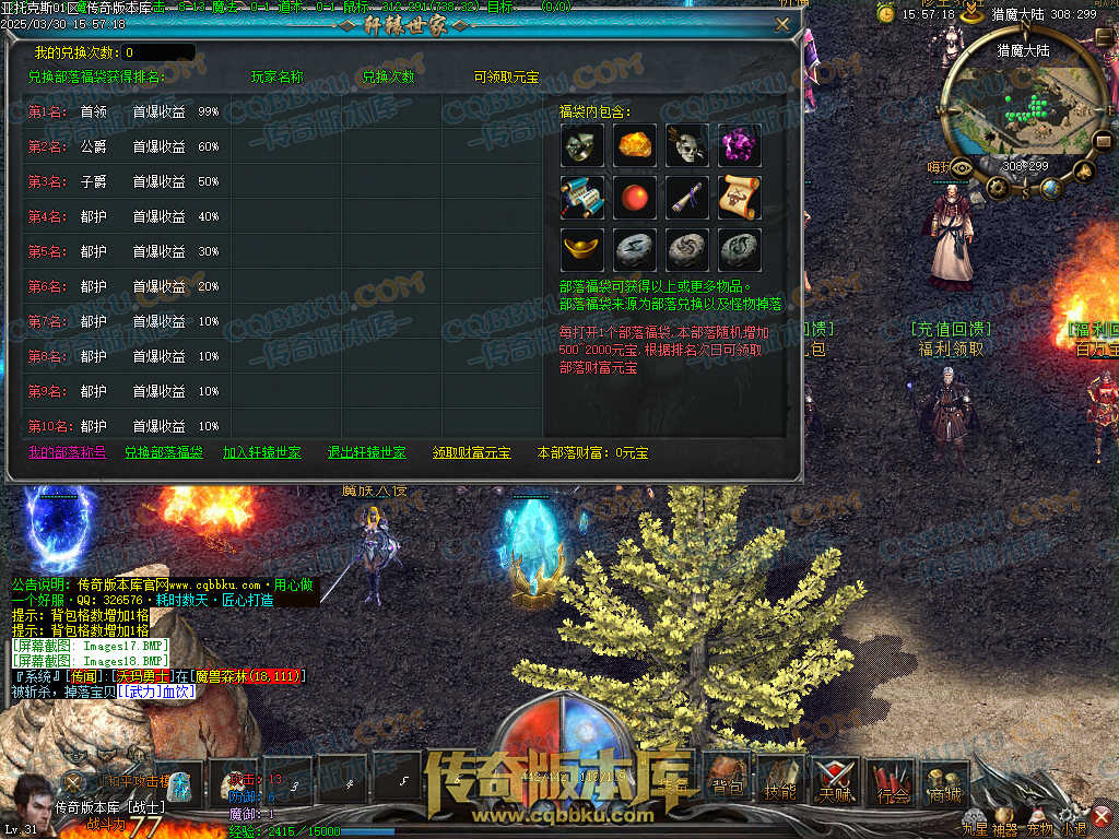 部落下面有兑换福袋,福袋的东西界面有说明仔细看都是值钱的好东西!∶全服怪物有几率掉落,