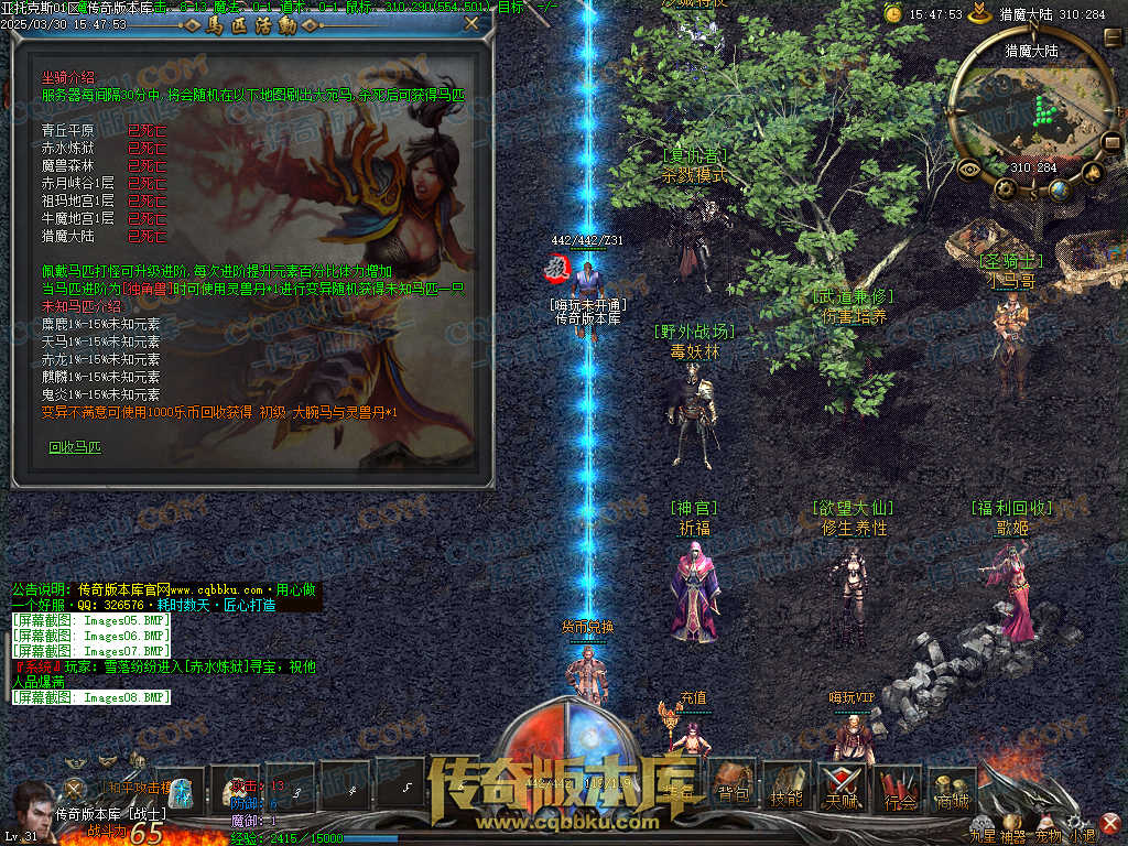 马:安全区最右边有个小马哥NPC(有坐标显示) 打到马之后 可以打怪升级 然后顶级之后 用灵兽丹变异(福袋出产) 随机获得元素属性