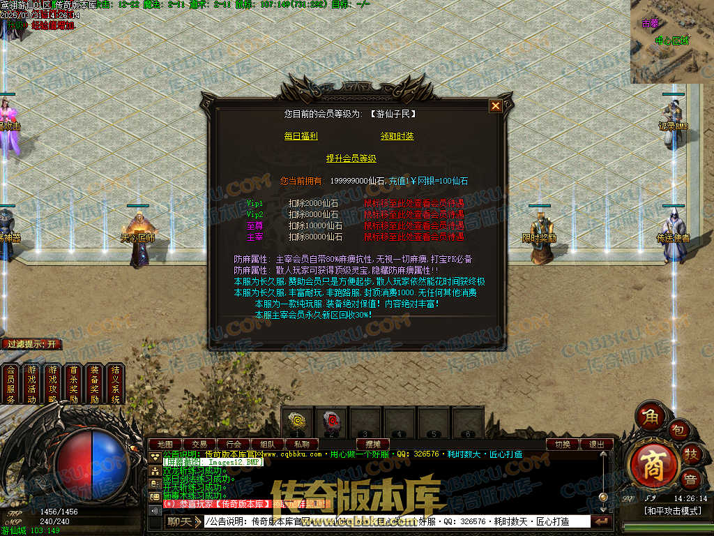 版本介绍:本服为大型公益复古单职业金币版 充值无金币 商人自由定价