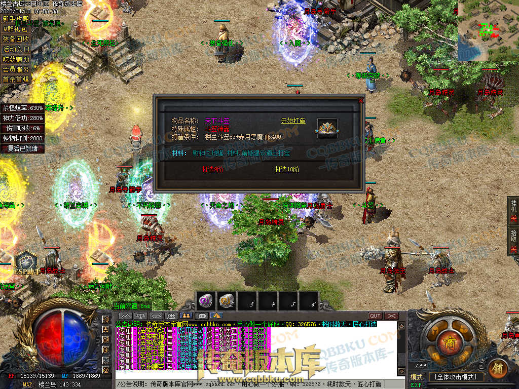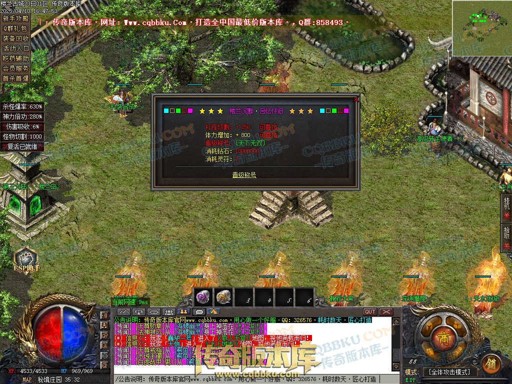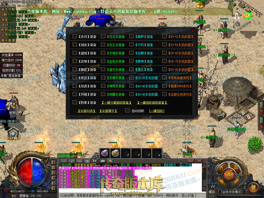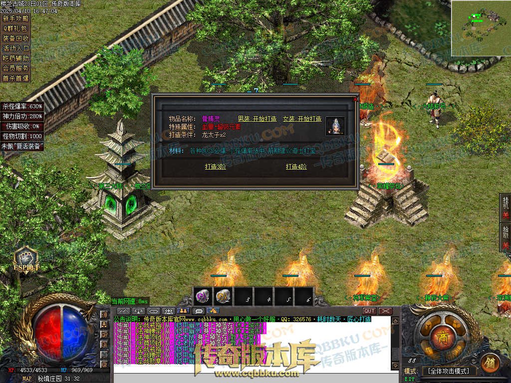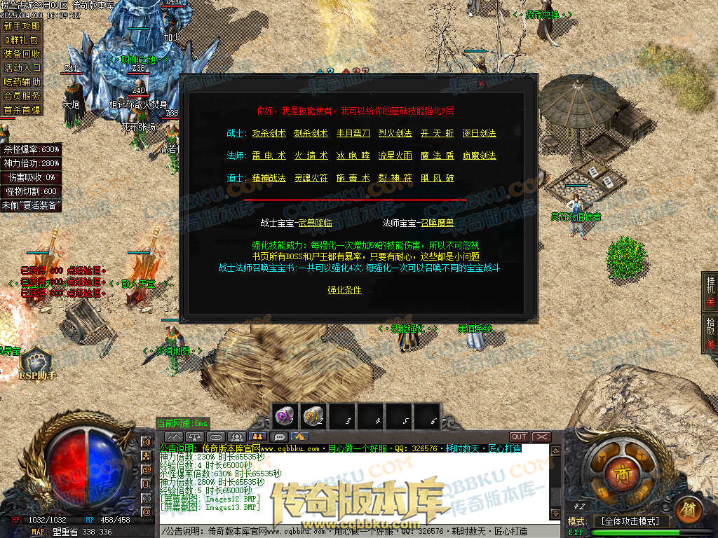 1.兑换Q群礼包:送回血宝石+最新技能书,上线自动激活自动捡物功能