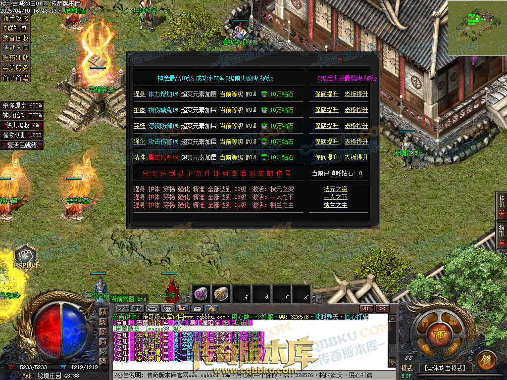 人物升级: 随身泡点+击杀怪物获得经验,可以商铺购买聚灵珠,会员有泡点加成