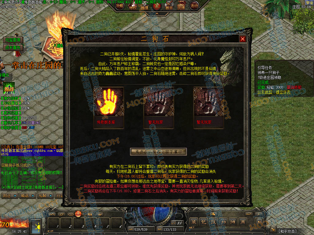 注意:如果你的二狗死了,不见了,或者你退出了再进,任务判定失败,