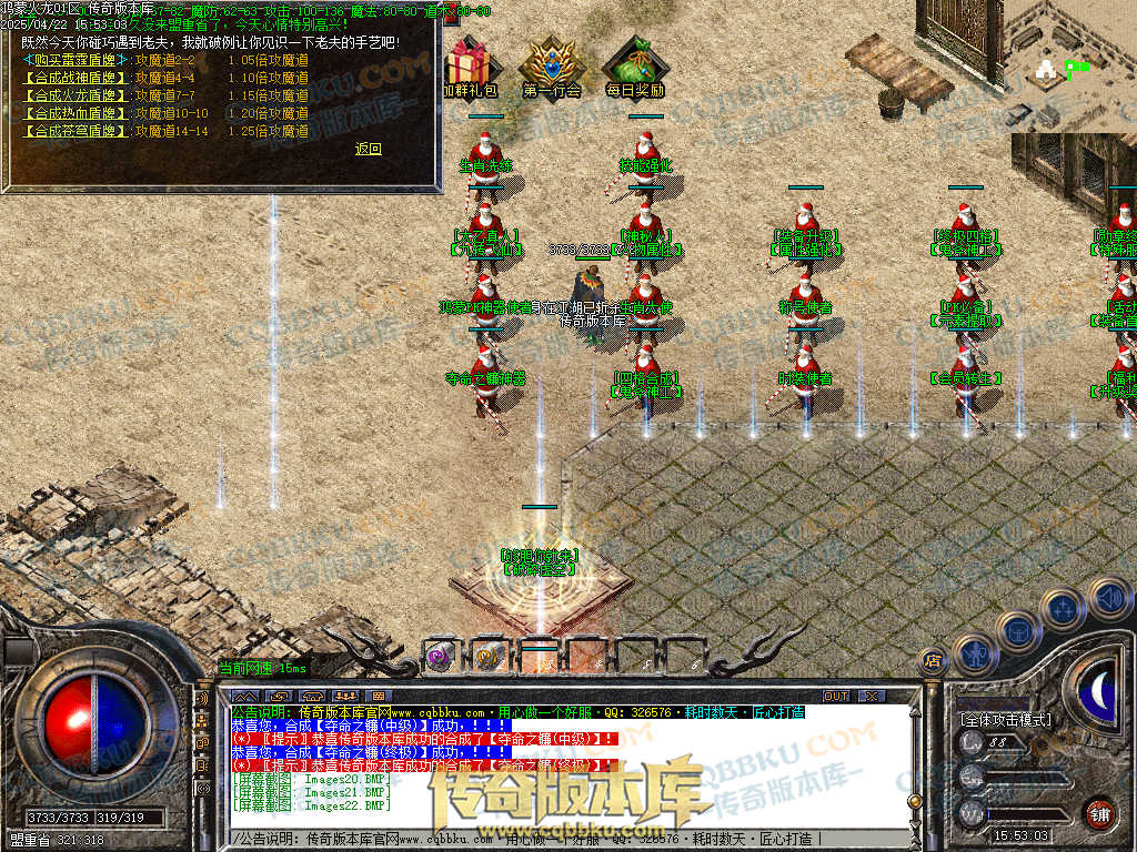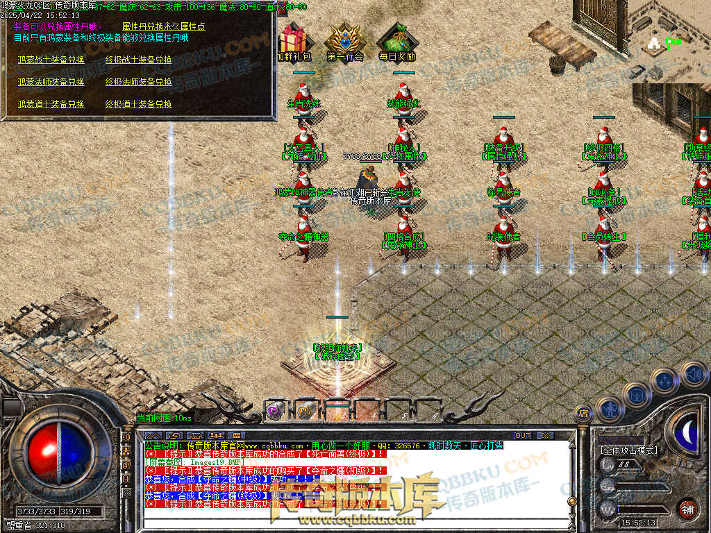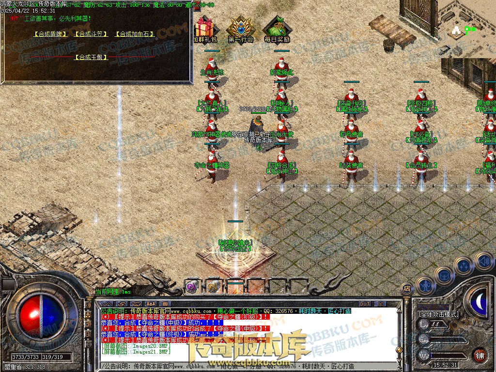 6、所有NPC,我都调整过,全部放到了土城,简单明了,另外95级地图最深处有顶级装备合成,我目前只开了四格合成,首饰,剑甲NPC均隐藏了,也不建议开,失去了打装备的乐趣