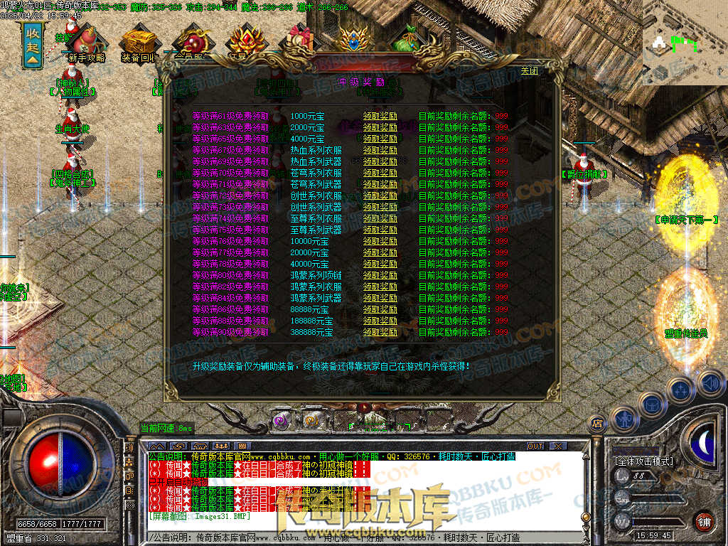 11、沙巴克奖励增加鸿蒙火龙装备,可自行删除