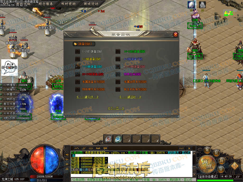 7.特别提醒:一键分解和自动分解会分解三大陆以上所有首饰和剑甲,是所有,是所有,是所有(重要事情说3遍)包括神魔之巅以上的所有首饰,强化过的武器和衣服!出此功能只是方便挂机党,请谨慎开启!否则后果自负!