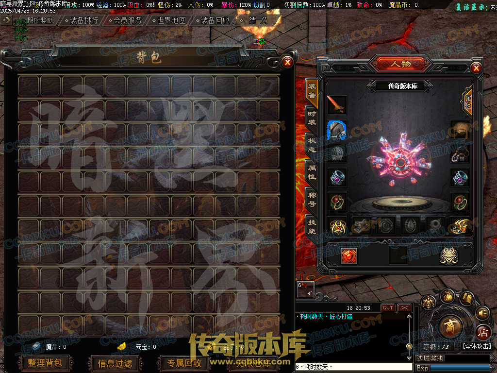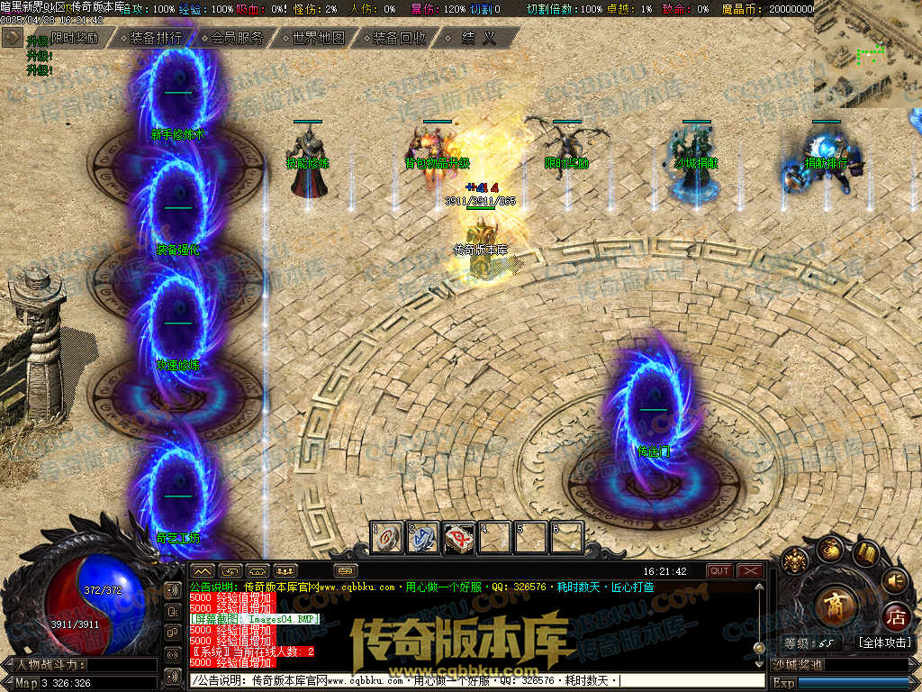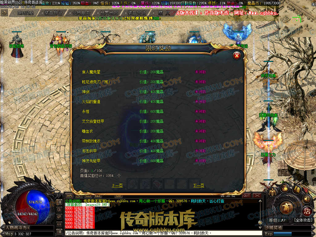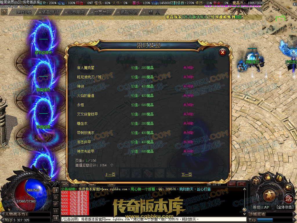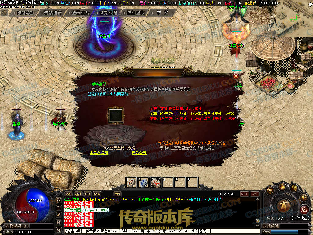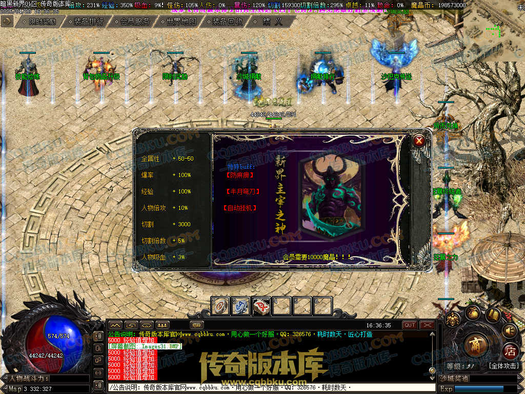 会员充值100元魔晶领取:高爆率 防麻痹 爆率+100%经验+100%人物倍攻+10%切割+3000.切割倍数+5%吸血+3% [累计30%到沙巴克奖池]