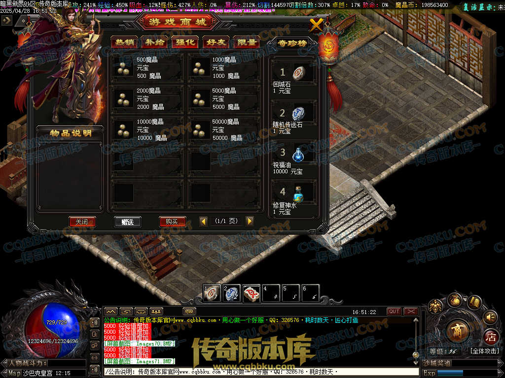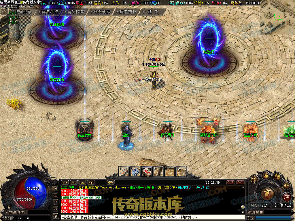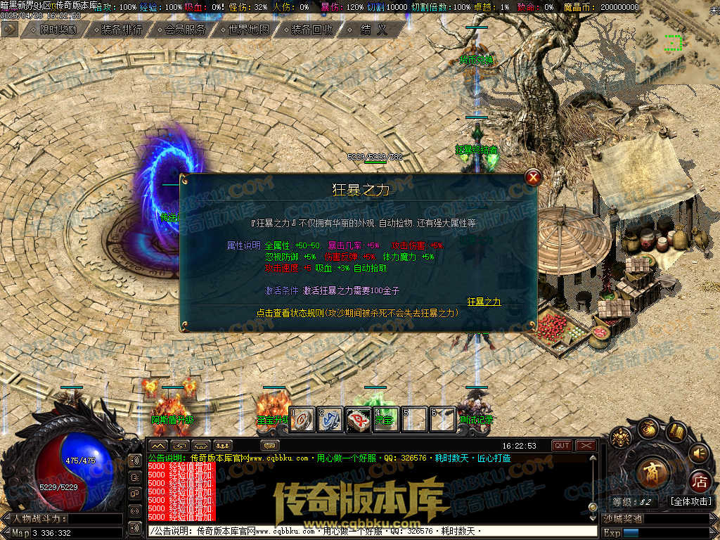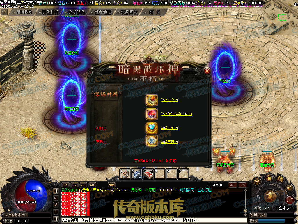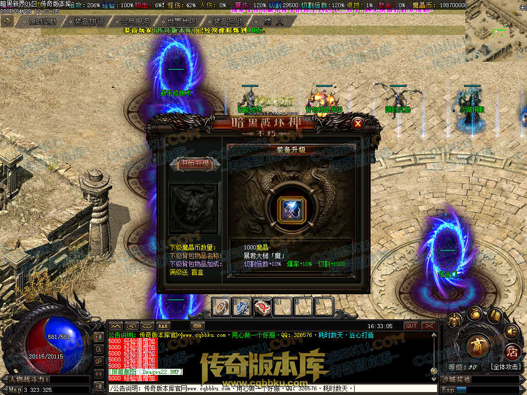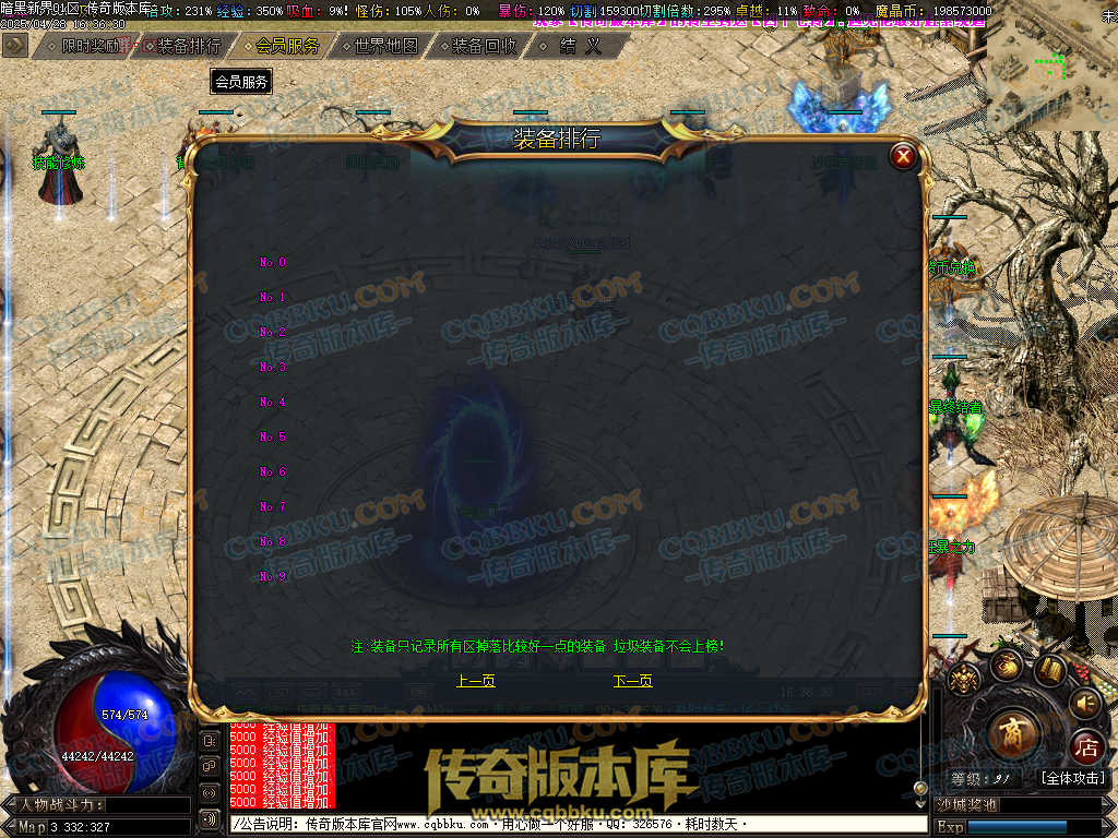 会员充值100元魔晶领取:高爆率 防麻痹 爆率+100%经验+100%人物倍攻+10%切割+3000.切割倍数+5%吸血+3% [累计30%到沙巴克奖池]
