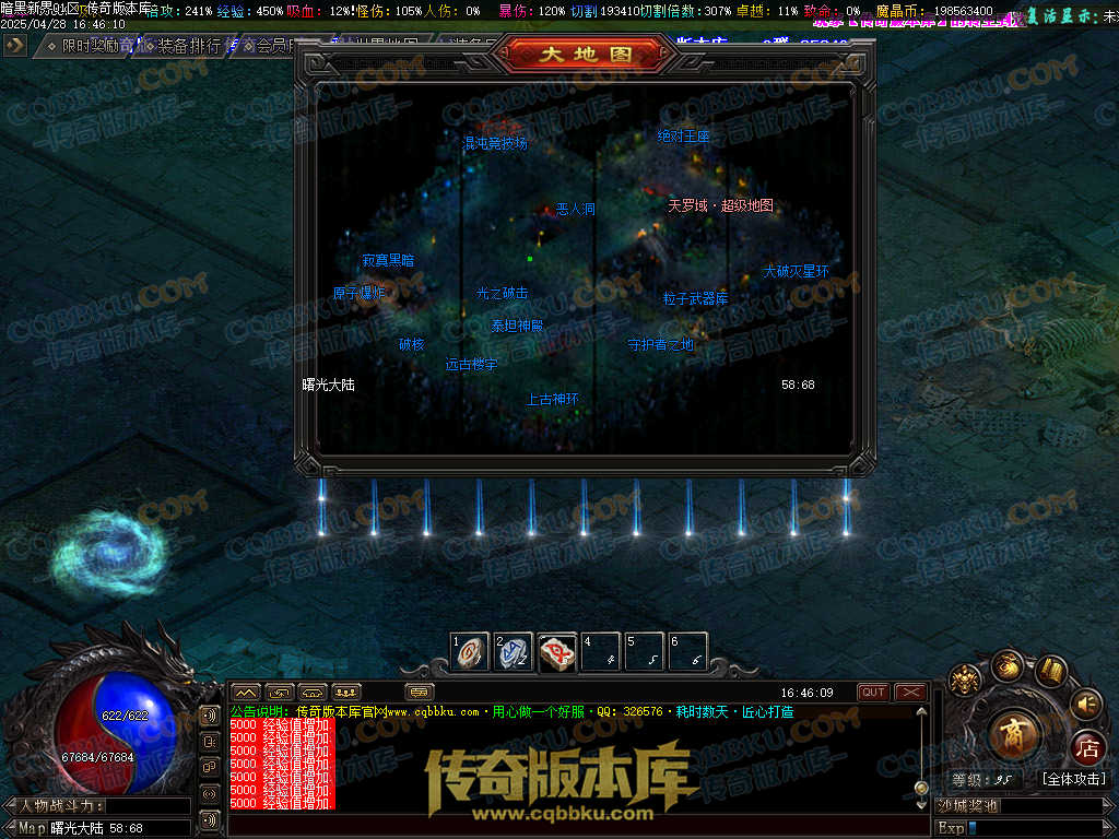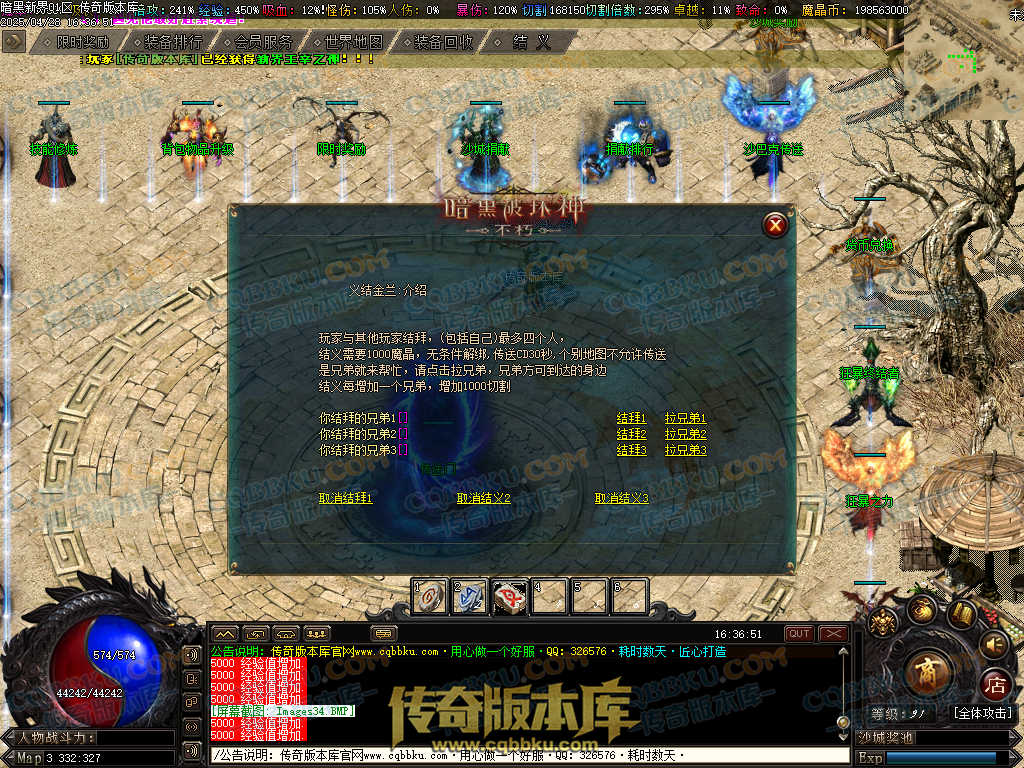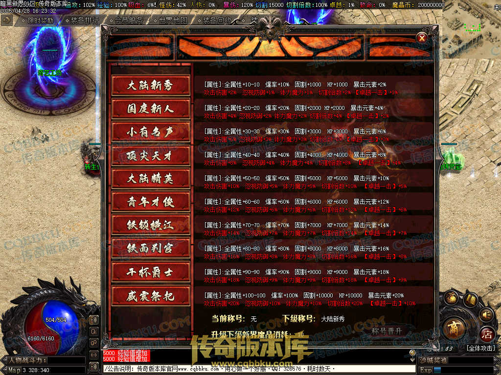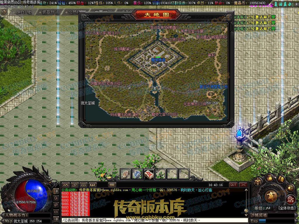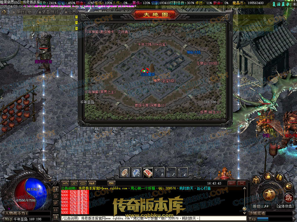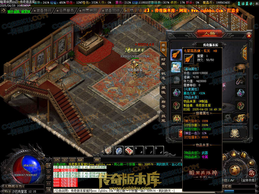 沙城捐献20元金子:爆率50%打怪经验50%切割倍数+5% 攻速+5 吸血+3% 人物倍攻+5% 对怪伤害5% 生命+5%