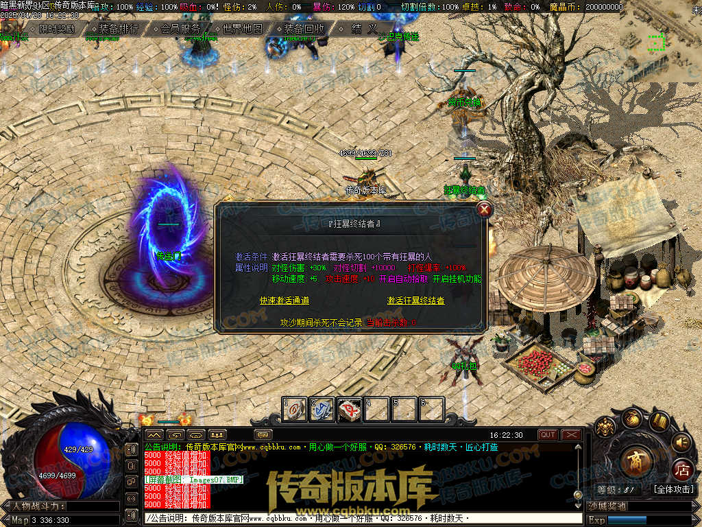 暗黑 · 狂暴之神 需击杀带有狂暴的玩家100名就是 100金子*100=10000金子 杀狂暴的彩头