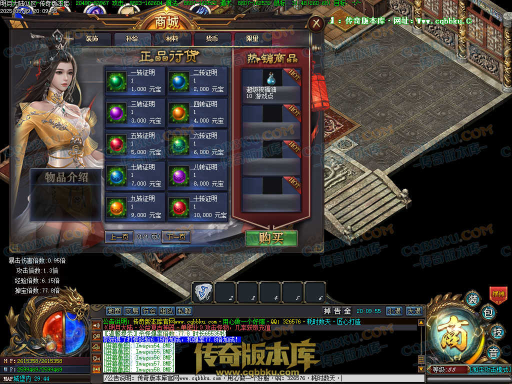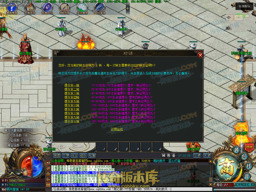 2.转生材料等全靠打怪获取,老板可以收取玩家打出的材料!
