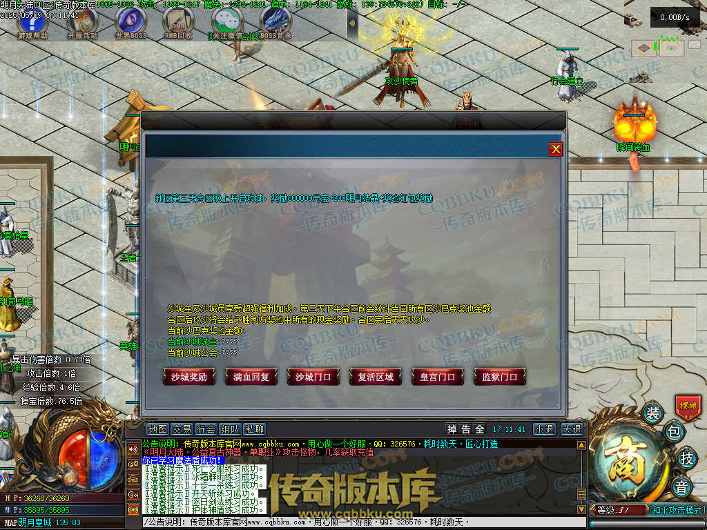 2.拿沙奖励:本服采取新区捐献,具体看土城上方NPC:新区捐献!