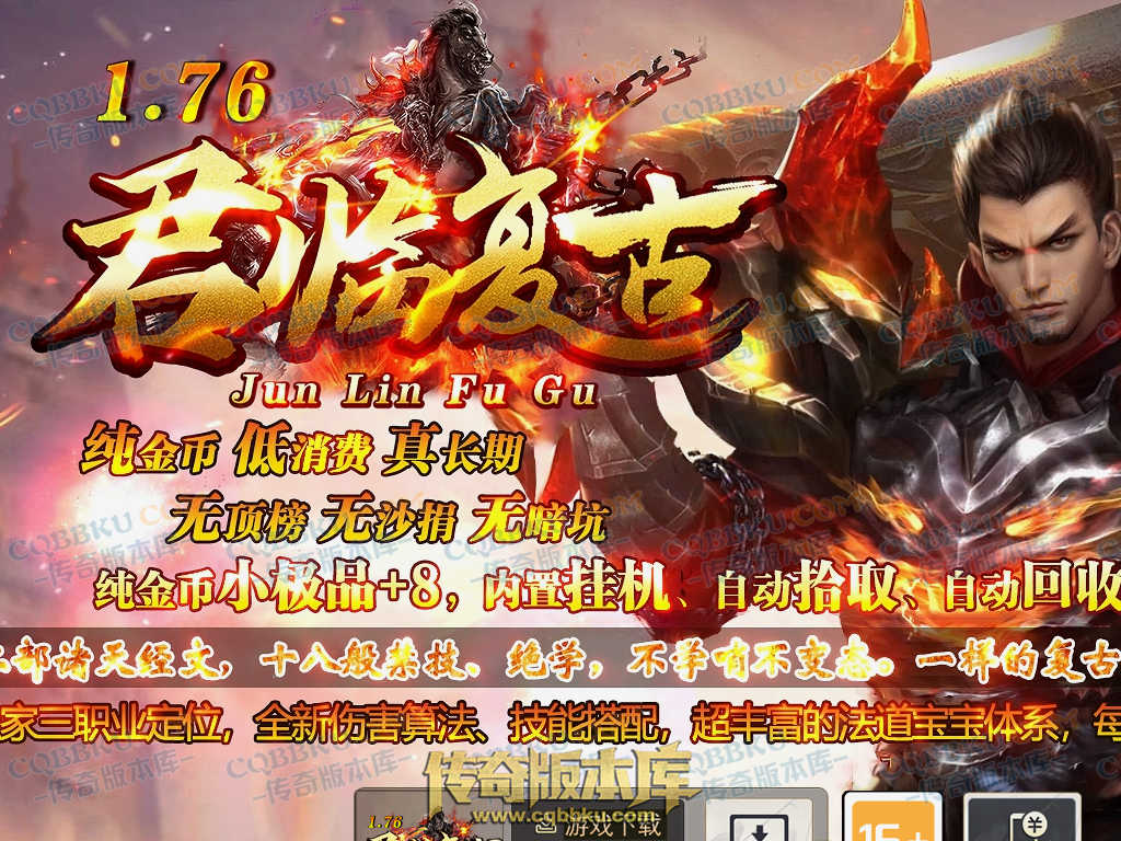 【版本介绍】:76小极品复古,纯金币模式,首饰衣服极品最高+8,武器极品最高+10,极品看脸,回收时可屏蔽高极品装备