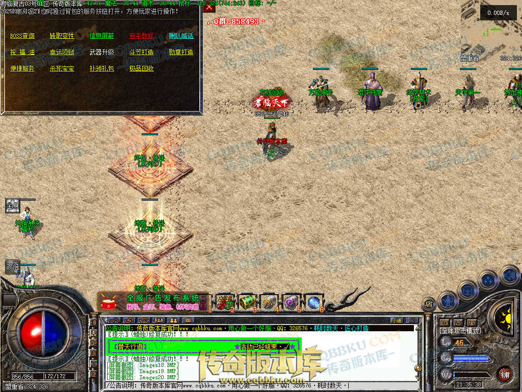 初级地图B0SS建议:所有隐藏地图、教主大厅、赤月巢穴、恶魔祭坛、沙藏主阁、幻境十层,这些地图B0SS密集刷新,打宝快,升级也不慢
