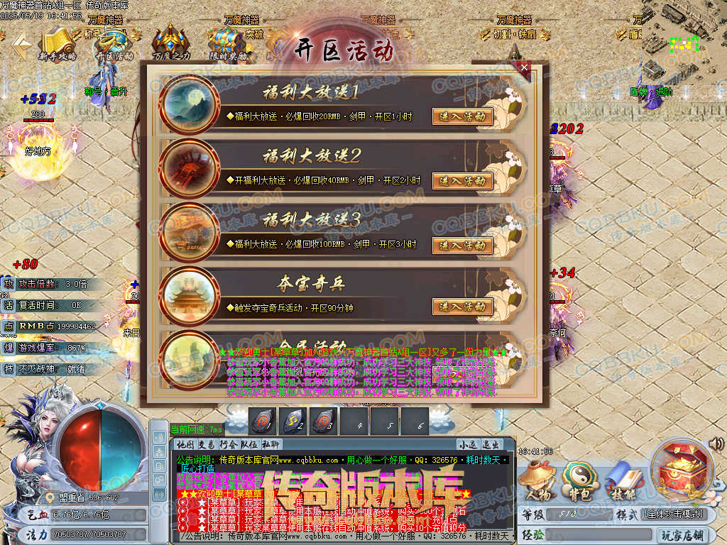4.新区福利活动:开区每隔168分钟,触发活动地图,此地图爆率非常之高