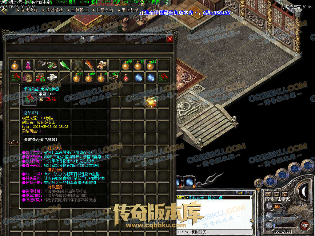 01-543独家1.76边界沉默飞扬古镇特色+8小极品复古-全屏吸怪-群体切割-背包神器-自动回收-自动拾取 | ||