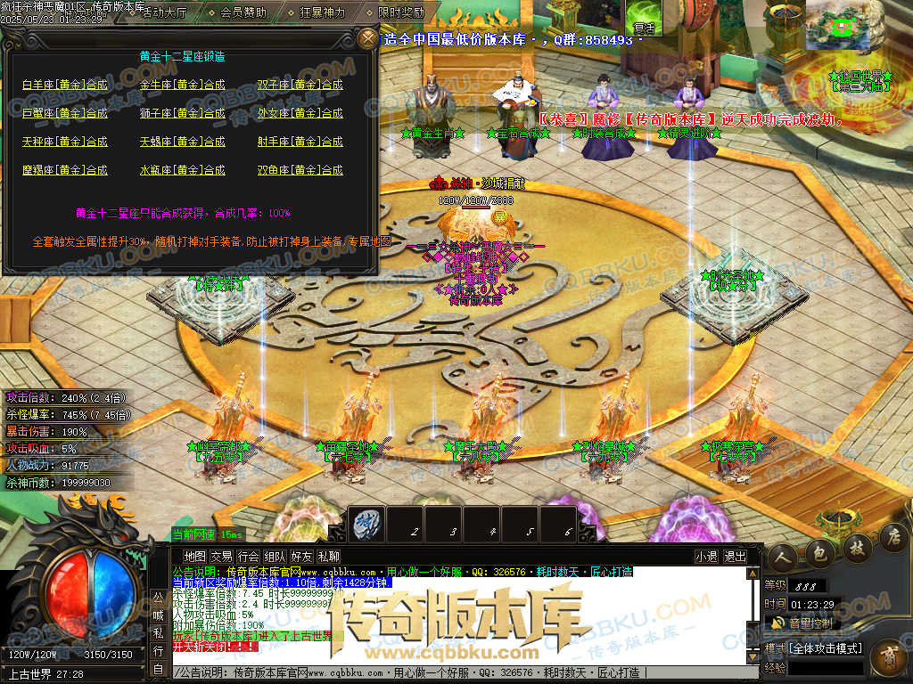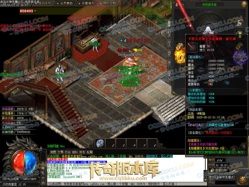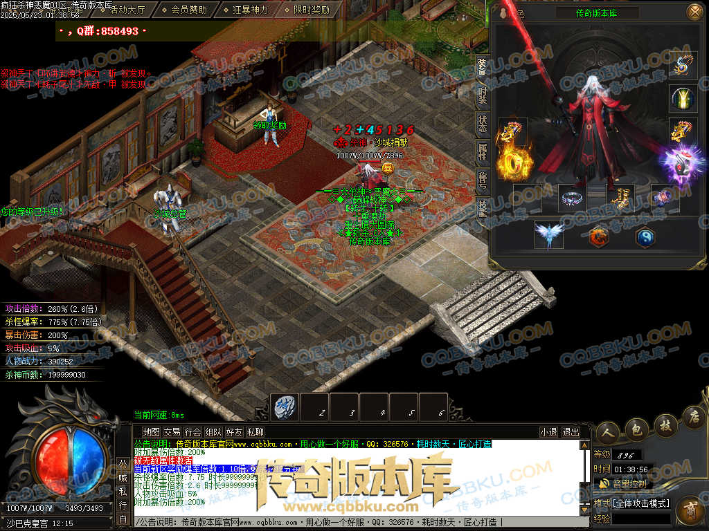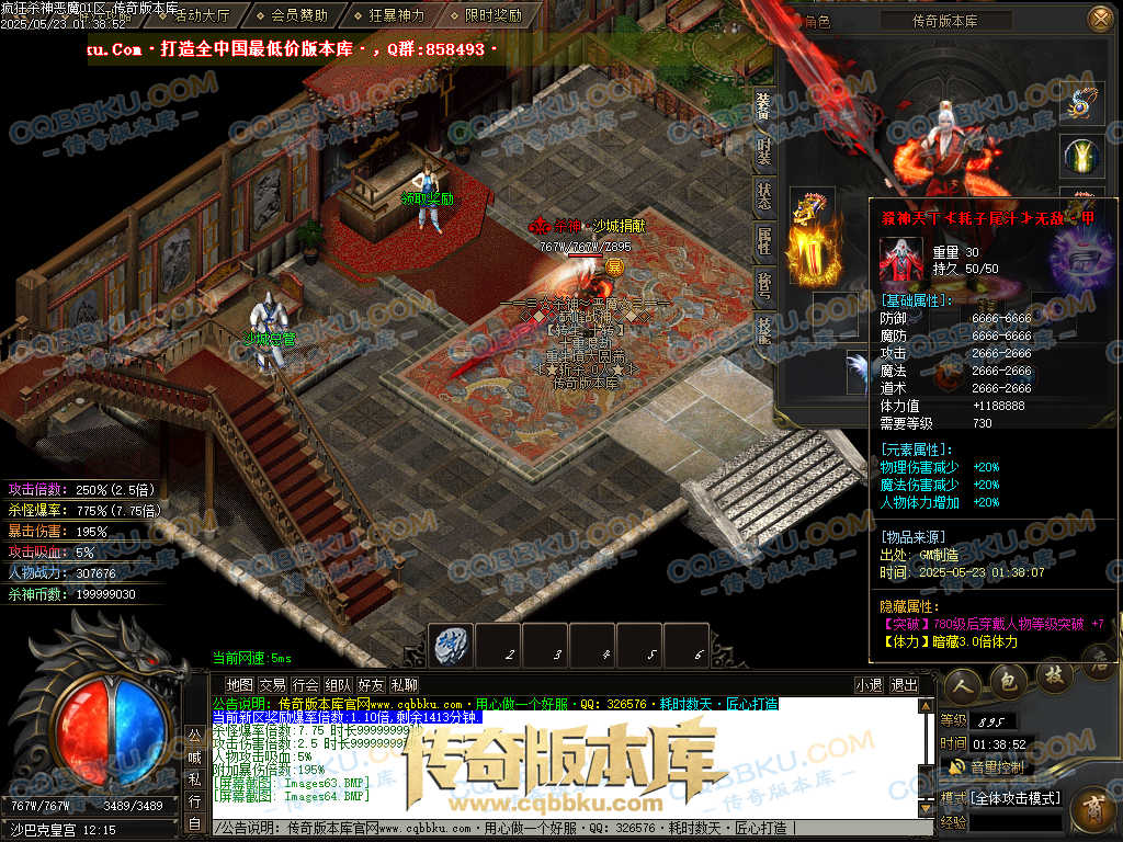 超级号【445米】:300元宝(赞助)+145殺神币(捐献30+狂暴5+帝王50+生肖60) 保底必爆750剑甲随机一件