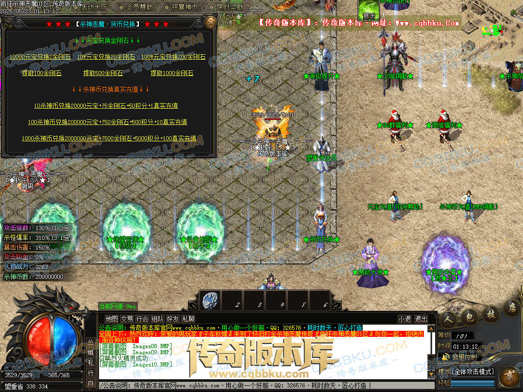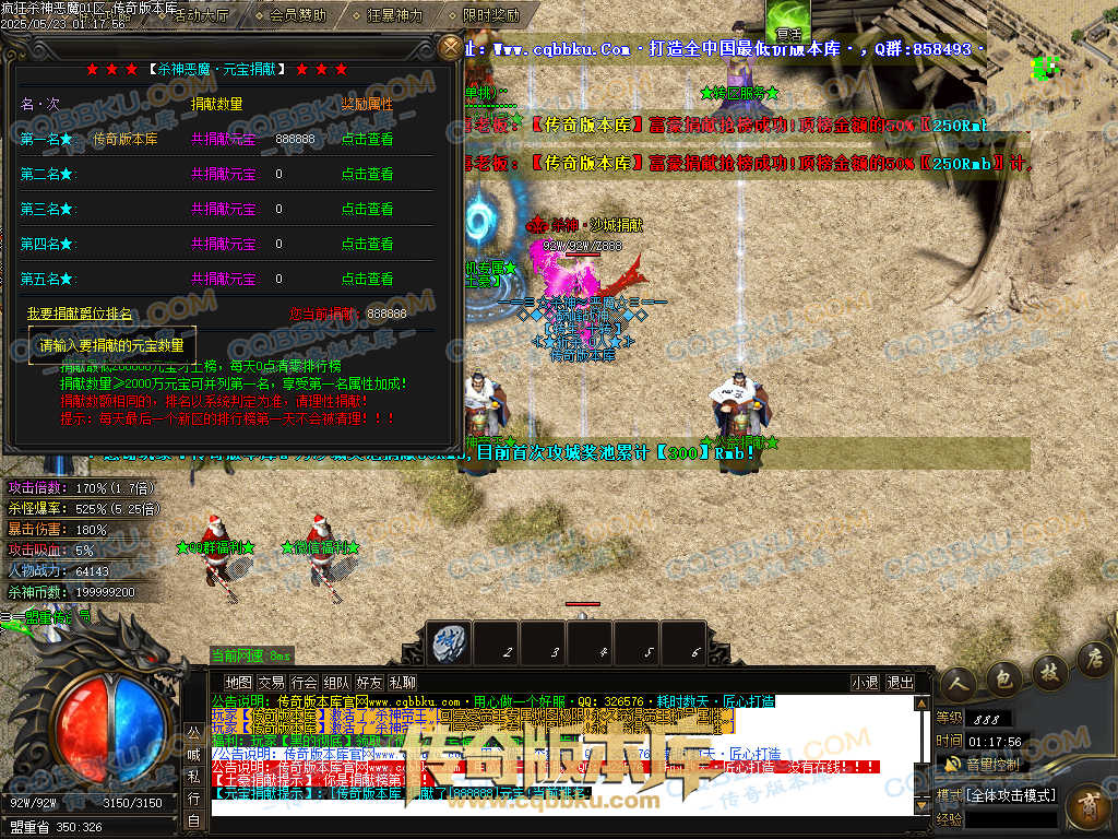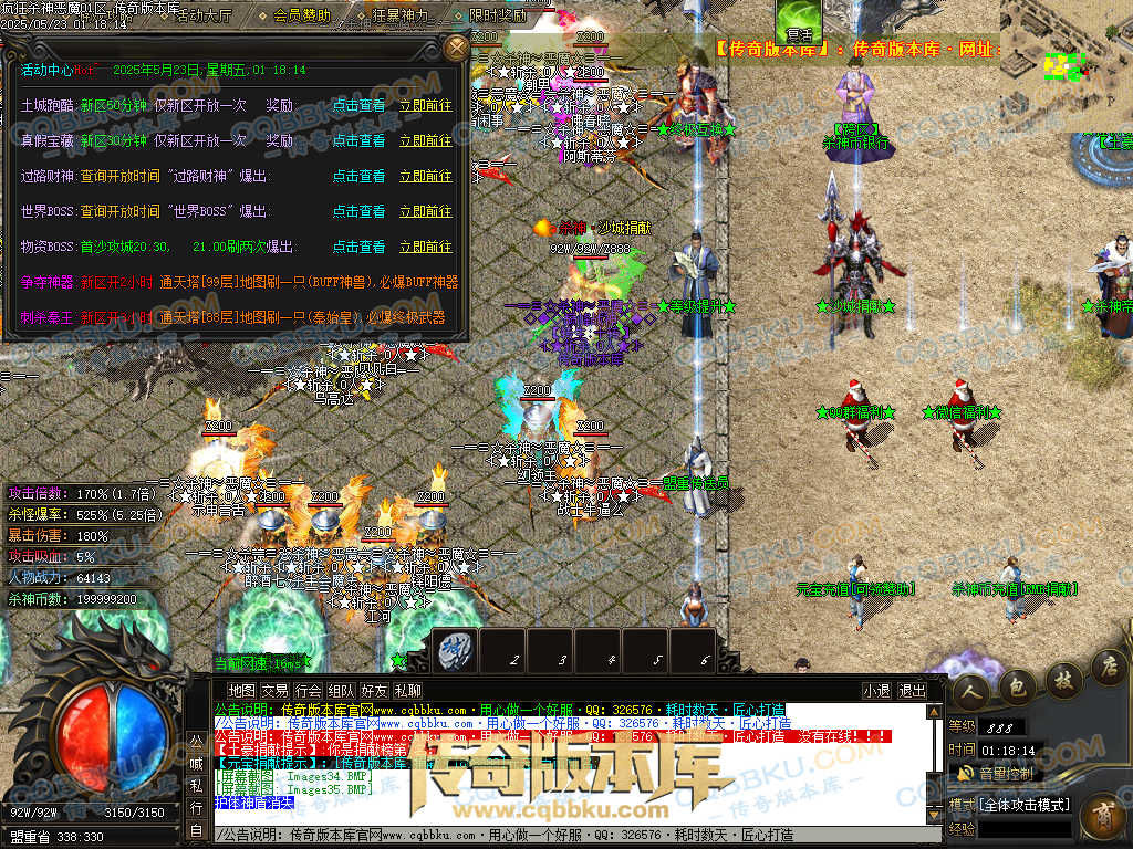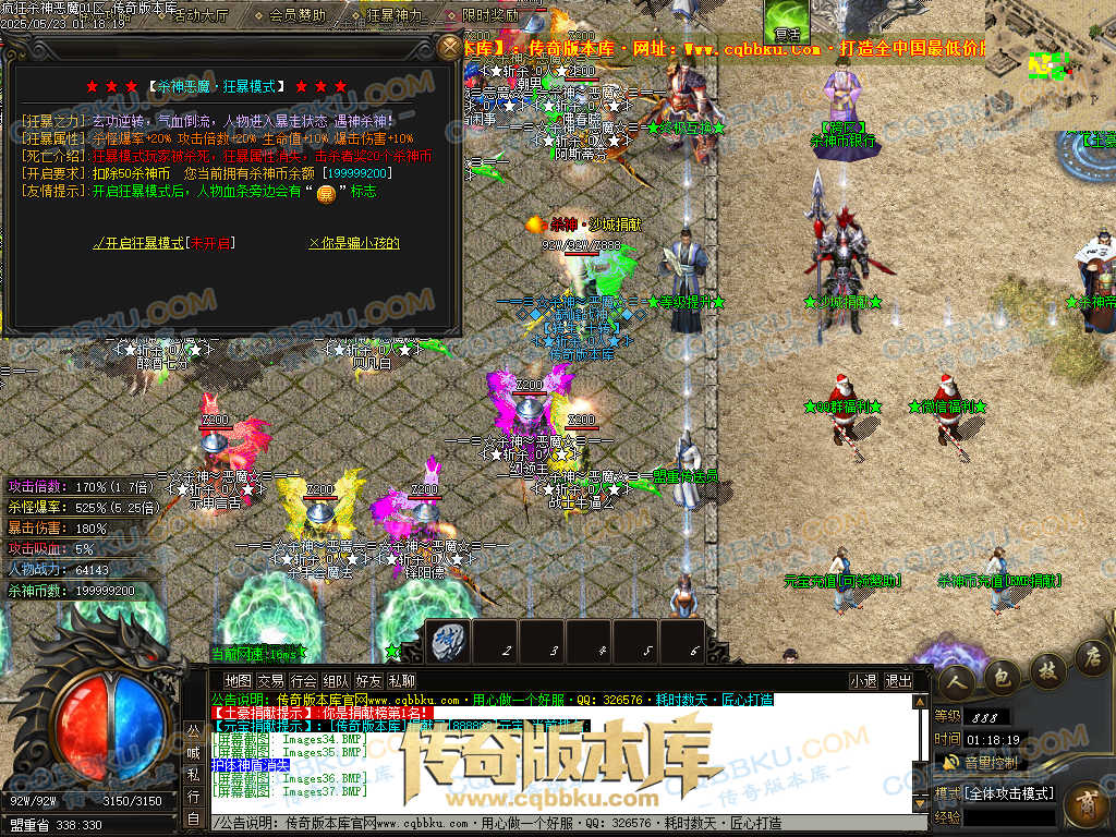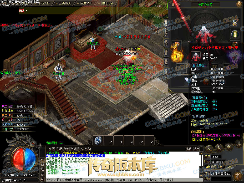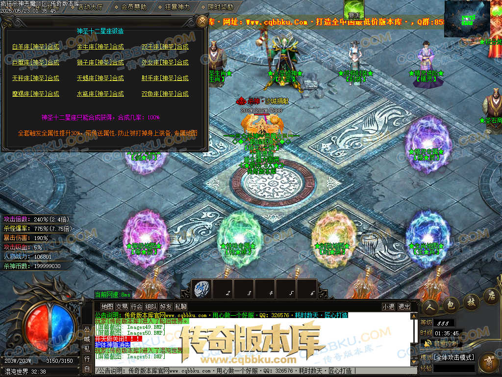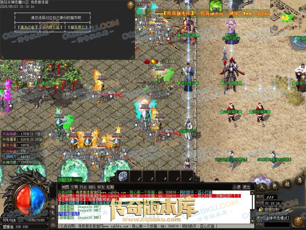 4.沙捐=300殺神币(30元充杀神币),可获得永久切割怪物属性(与赞助叠加),专属打宝地图,自动捡物回收
