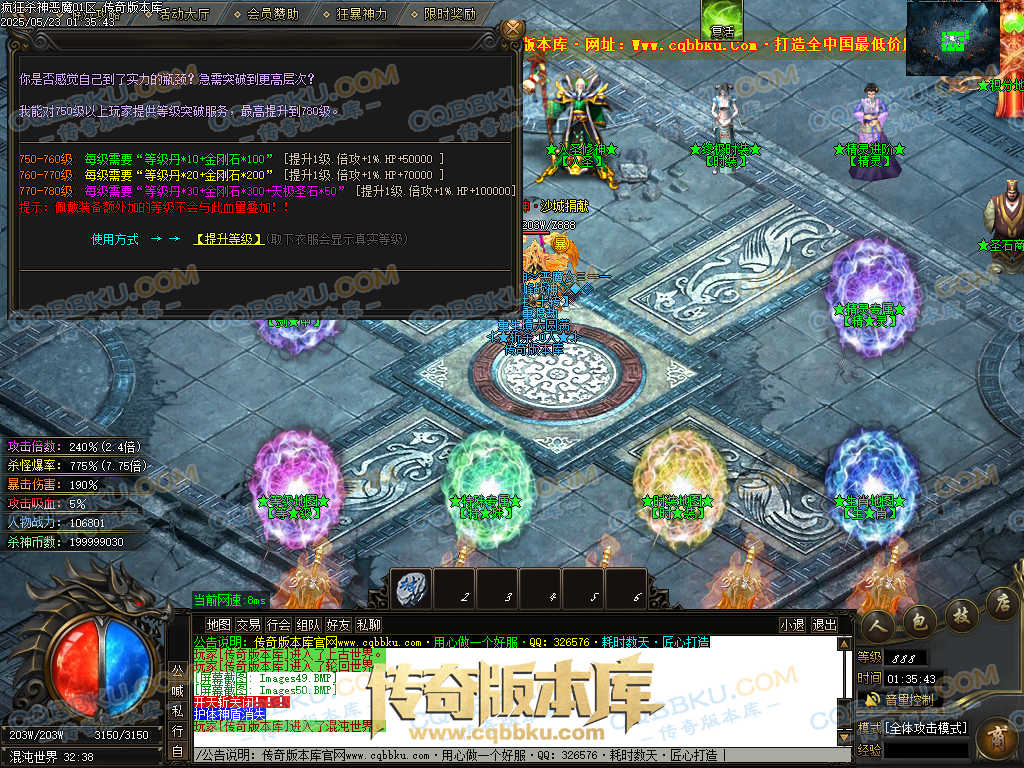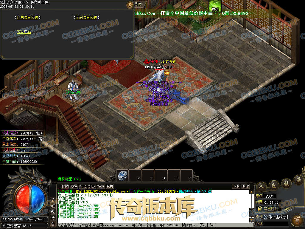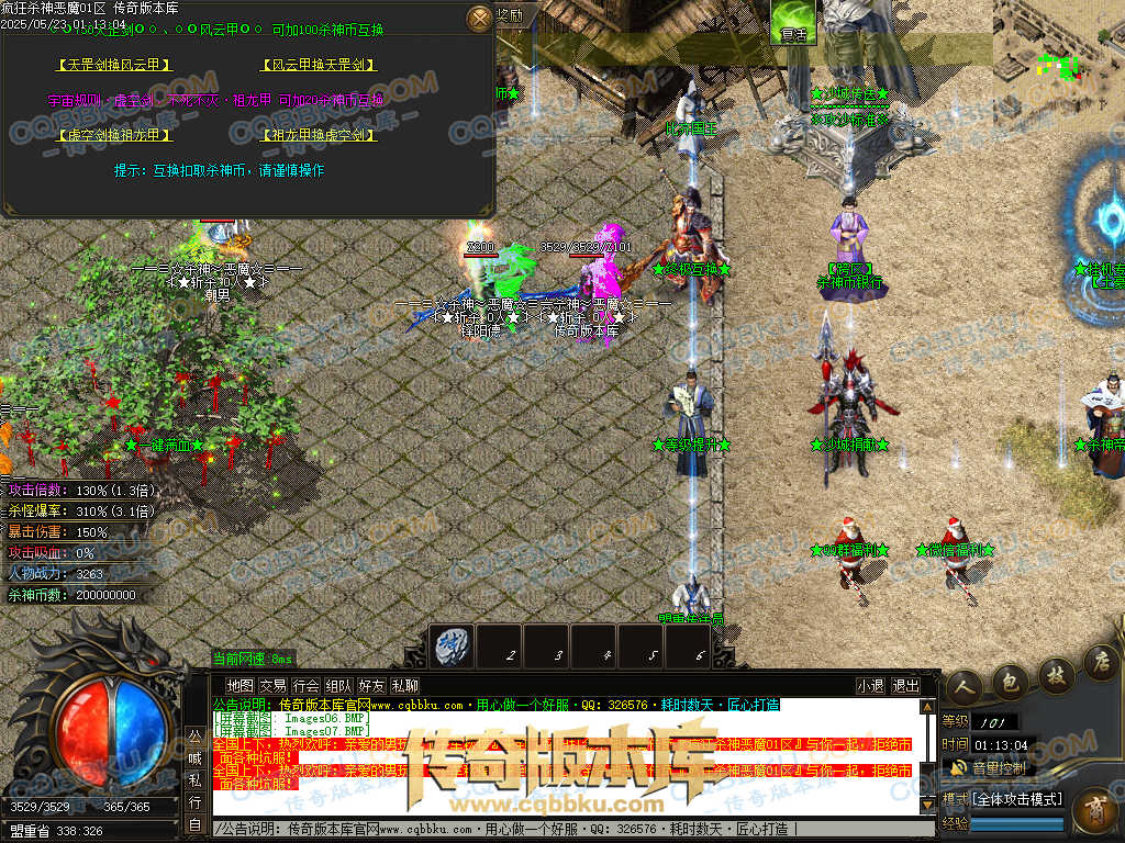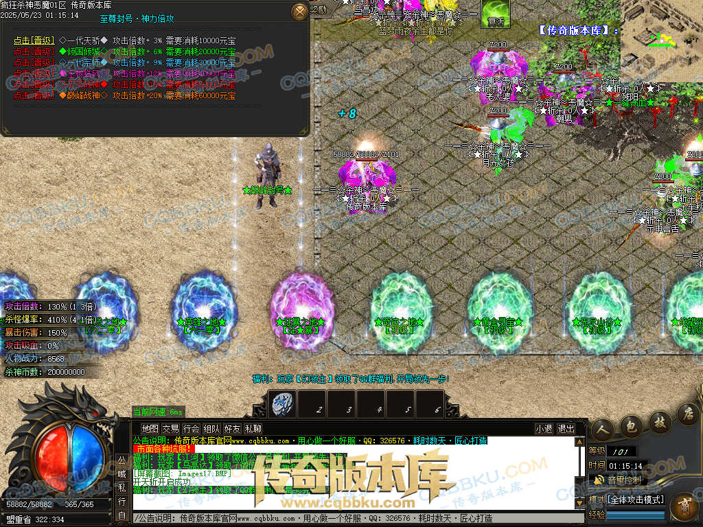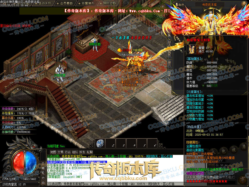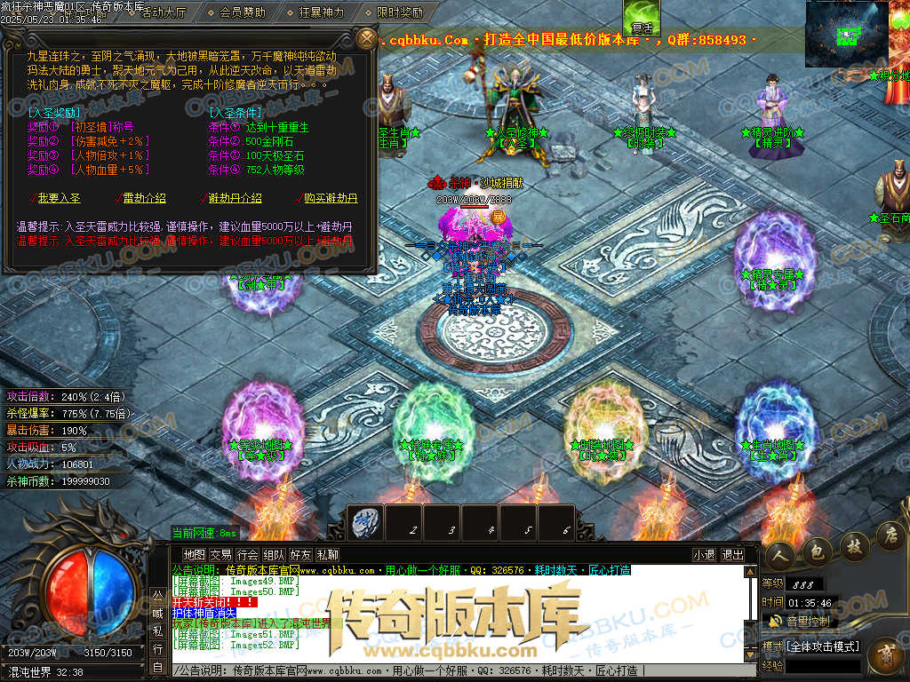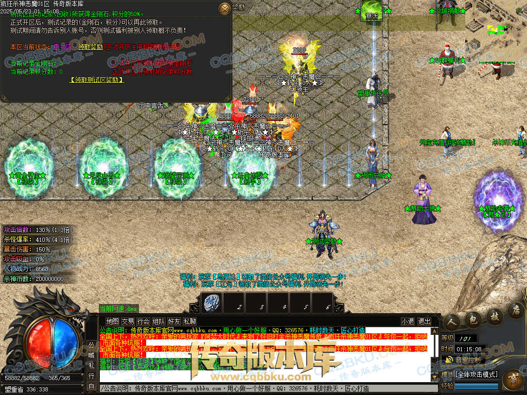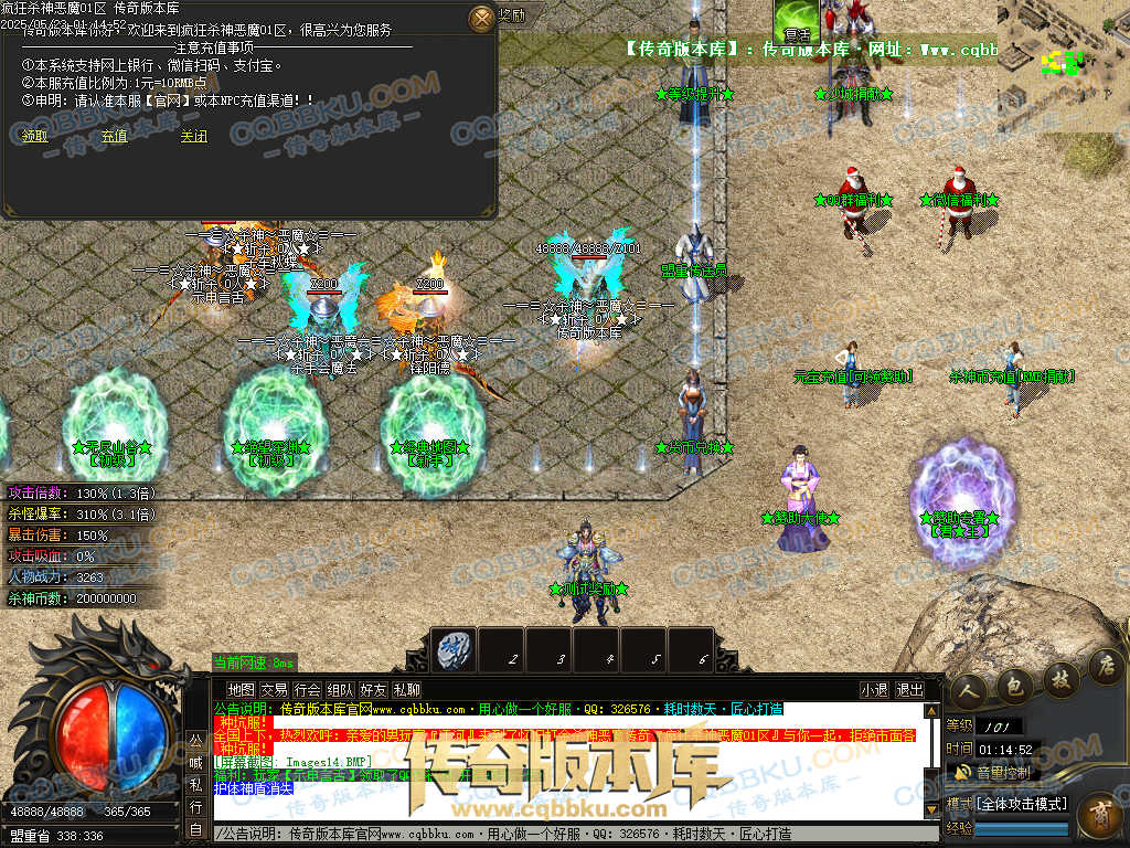 4.沙捐=300殺神币(30元充杀神币),可获得永久切割怪物属性(与赞助叠加),专属打宝地图,自动捡物回收