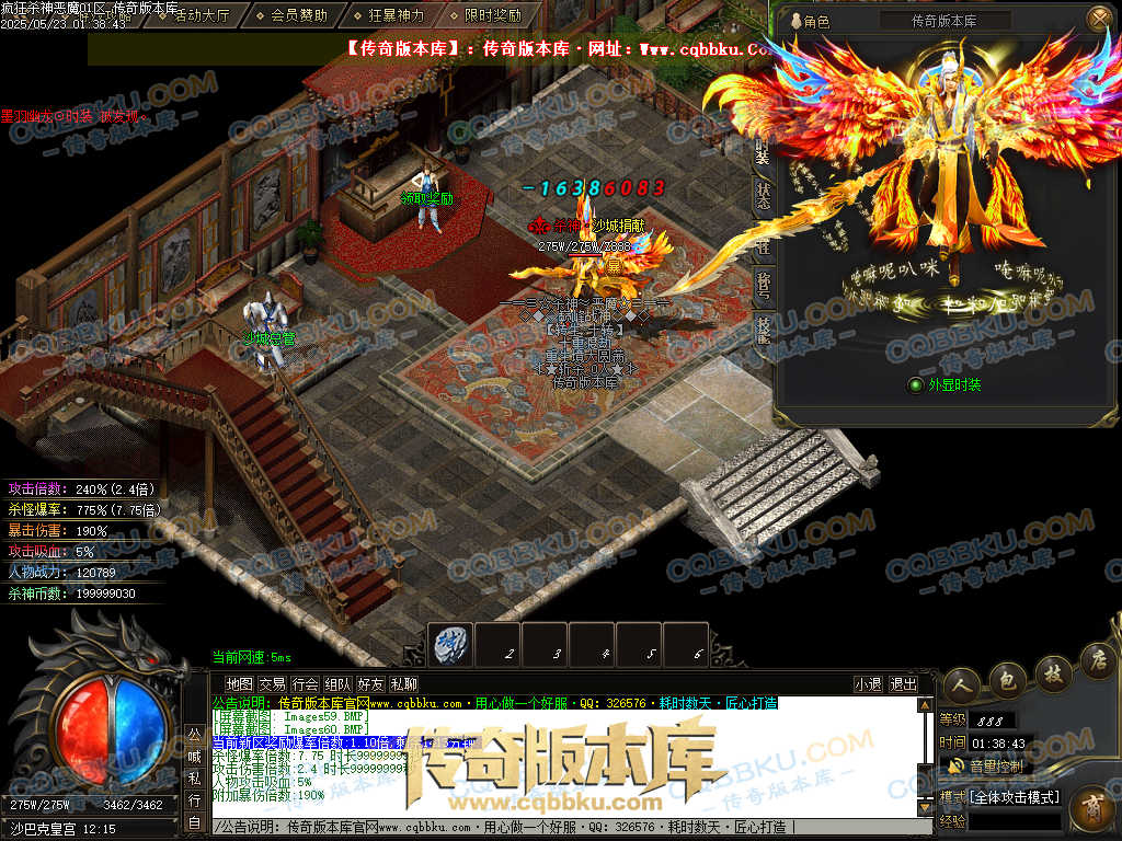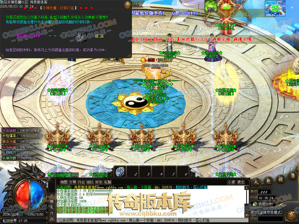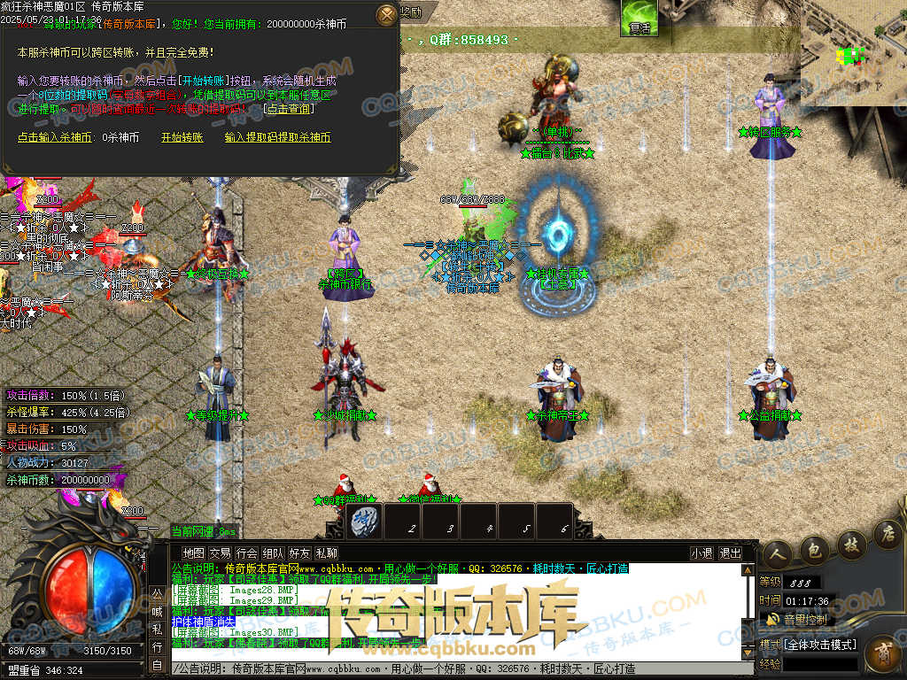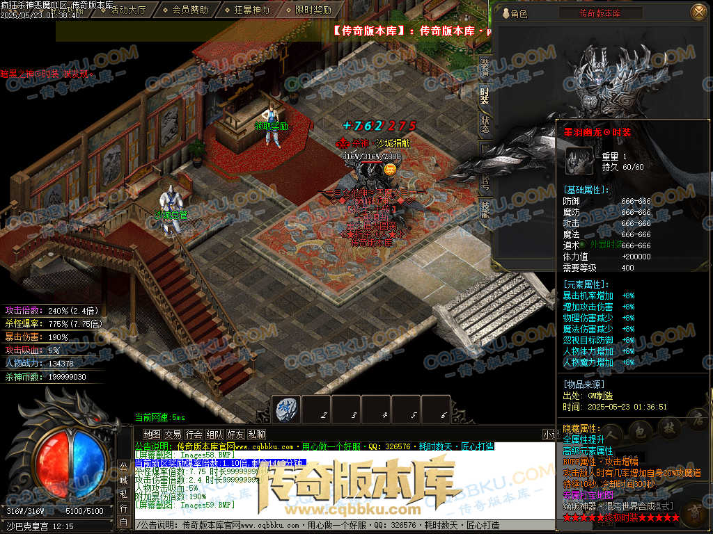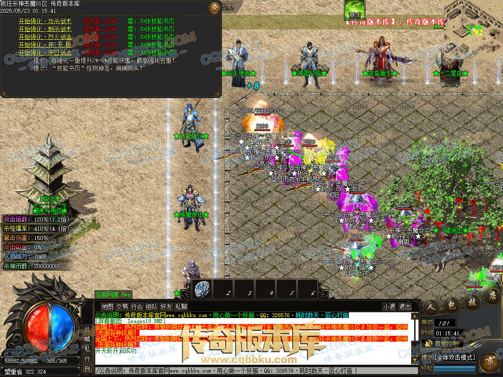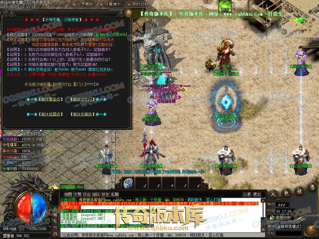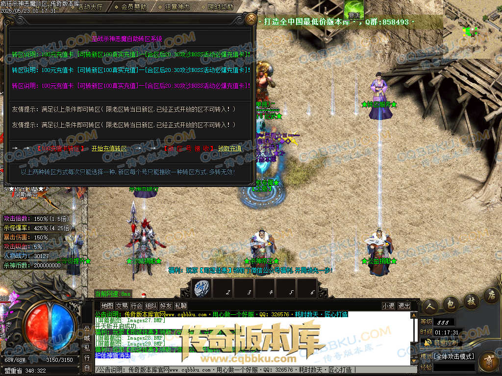 4.沙捐=300殺神币(30元充杀神币),可获得永久切割怪物属性(与赞助叠加),专属打宝地图,自动捡物回收