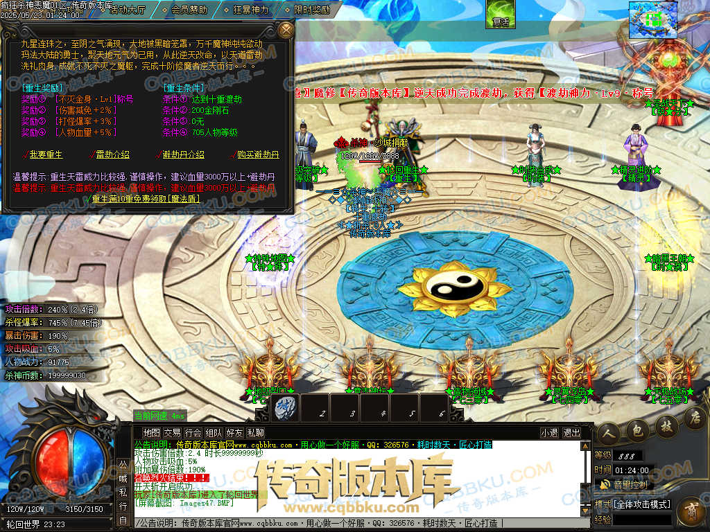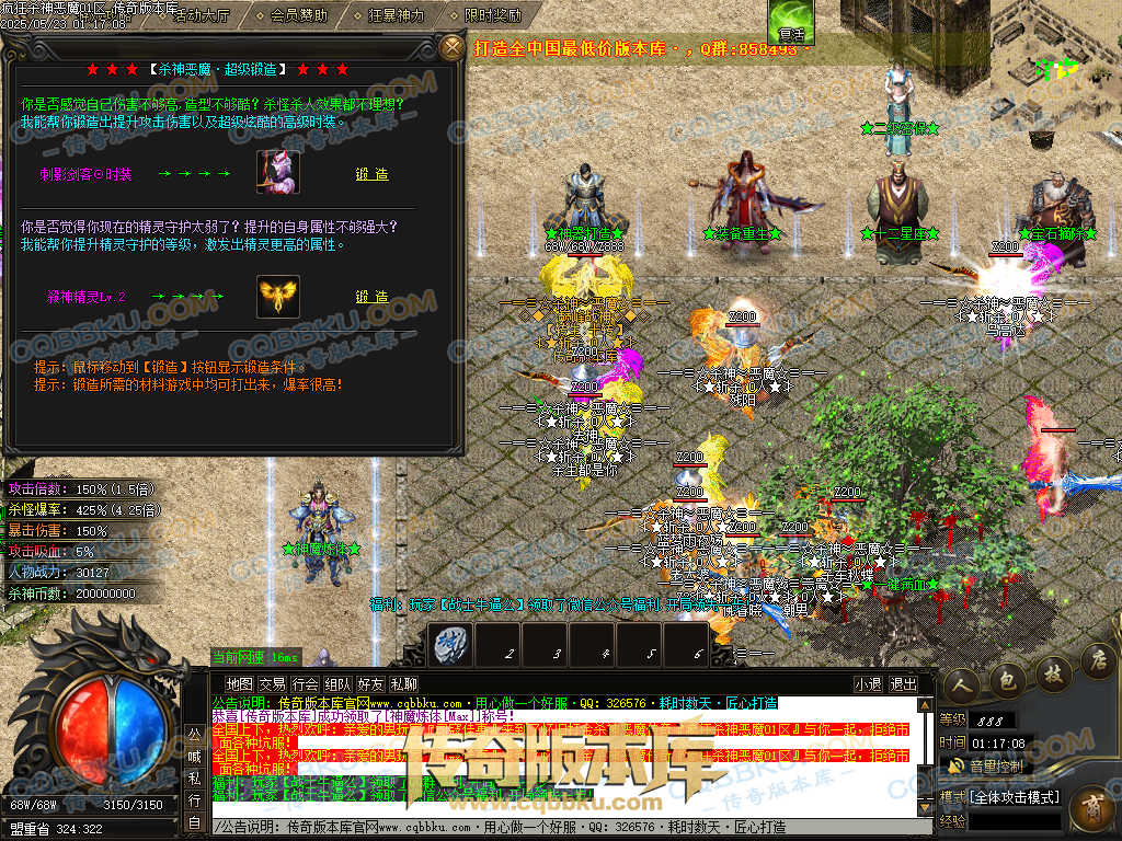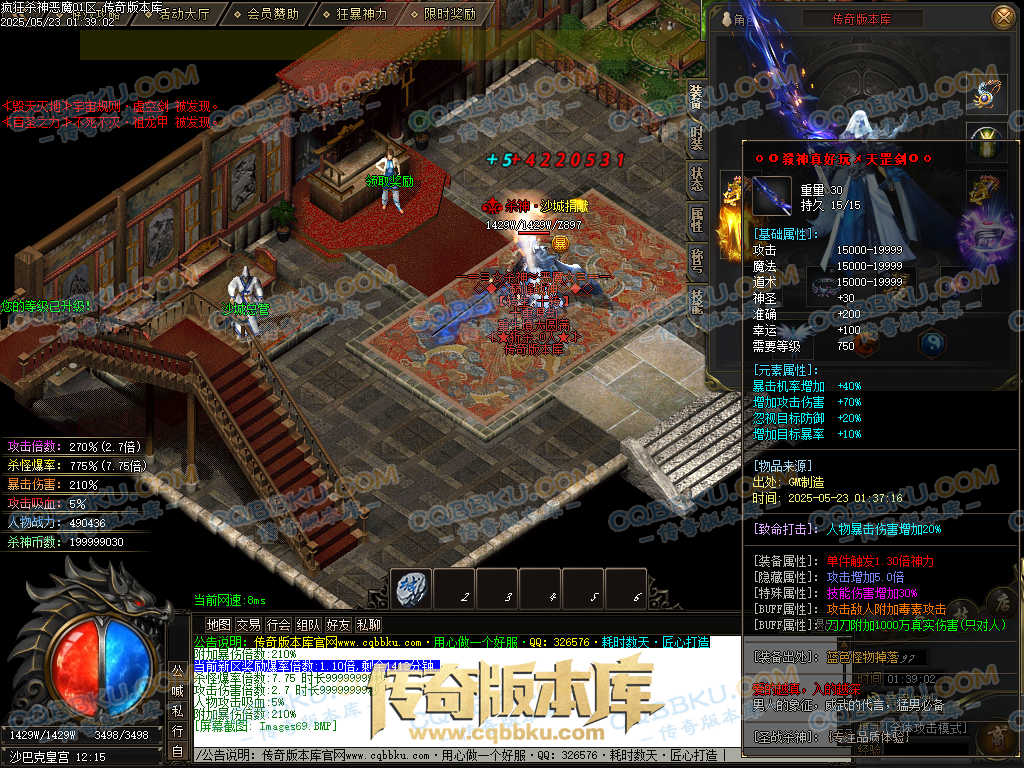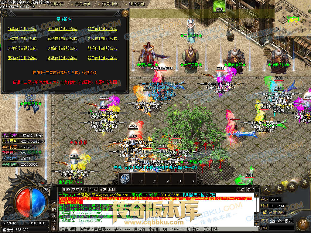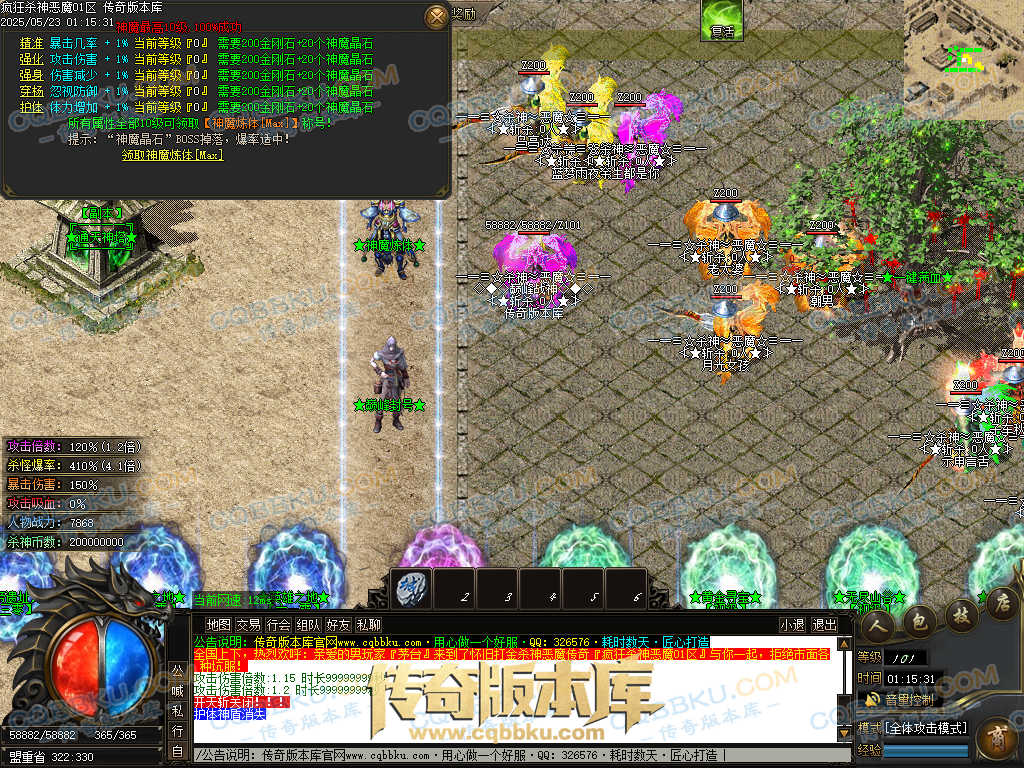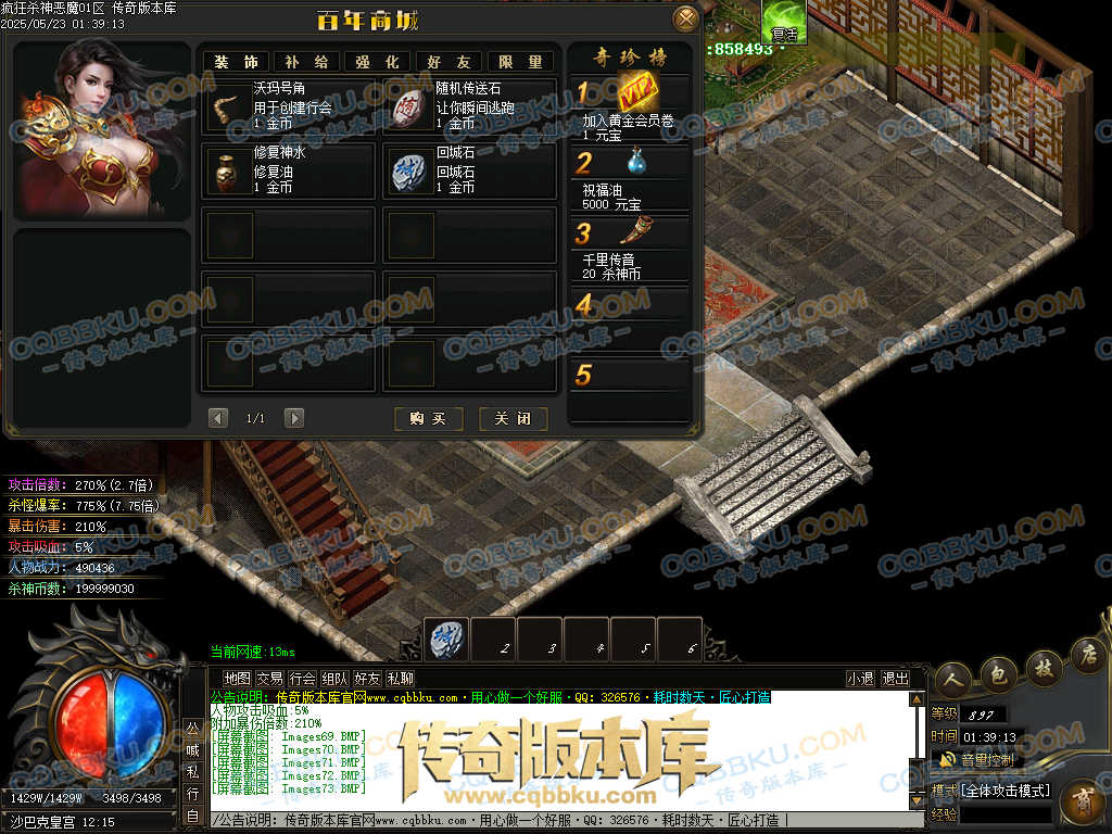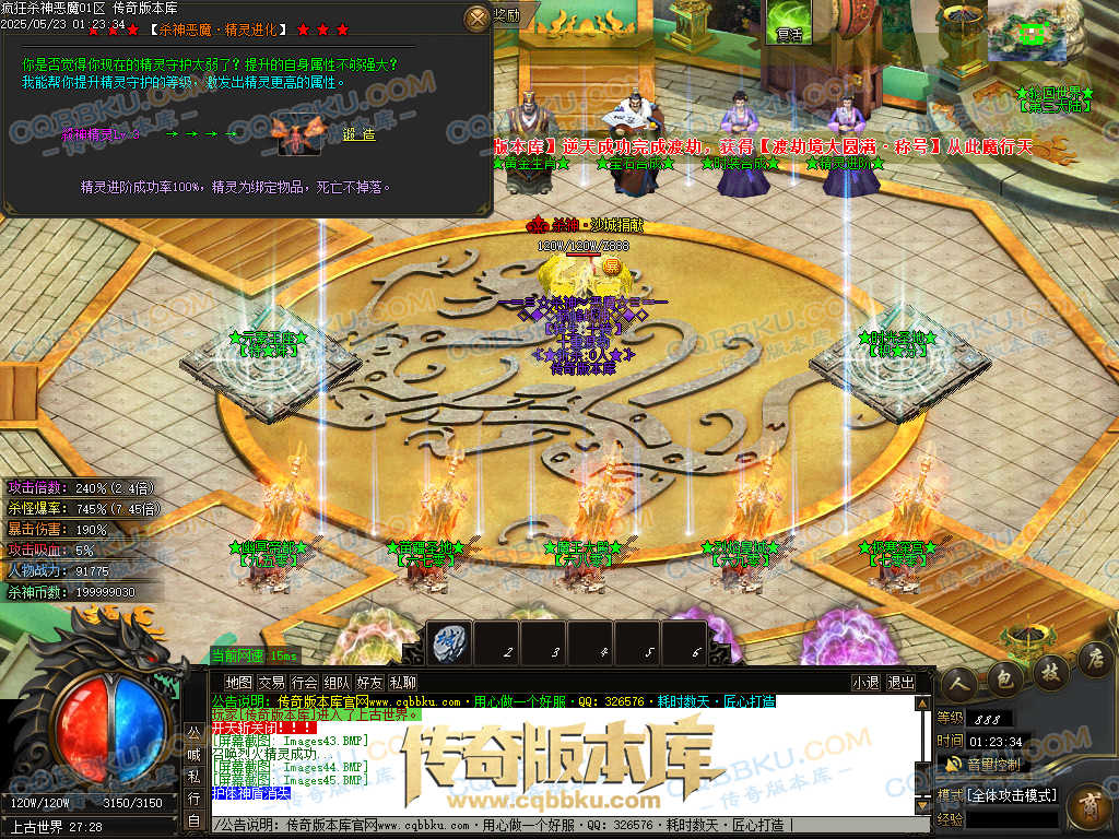 4.沙捐=300殺神币(30元充杀神币),可获得永久切割怪物属性(与赞助叠加),专属打宝地图,自动捡物回收