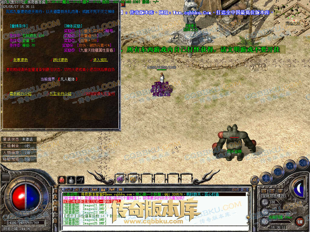 温馨提示:本服所有技能书和赞助以及沉默会员证都可打怪爆出3.2W血量以上BOSS概率爆出,BOSS血量越高爆率就越高,能白嫖一切
