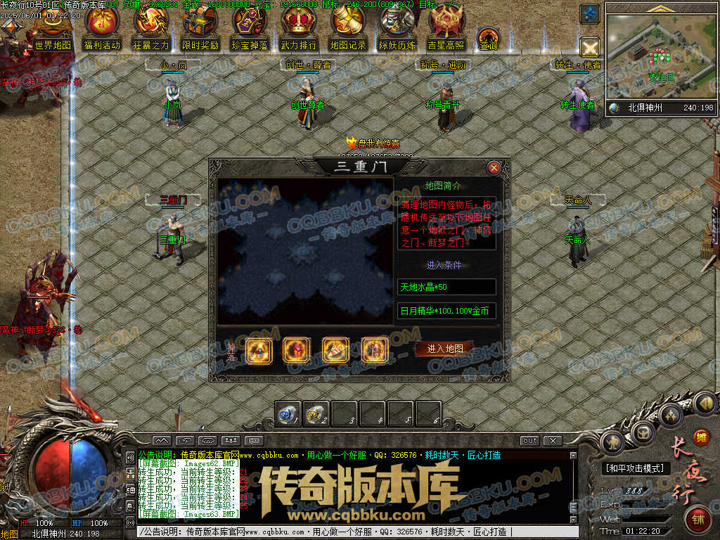 岚の 直接进入三重门击杀怪物掉落,地狱圣印,神风咒符,断梦之物,直接找(小岚)打造即可
