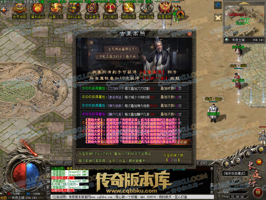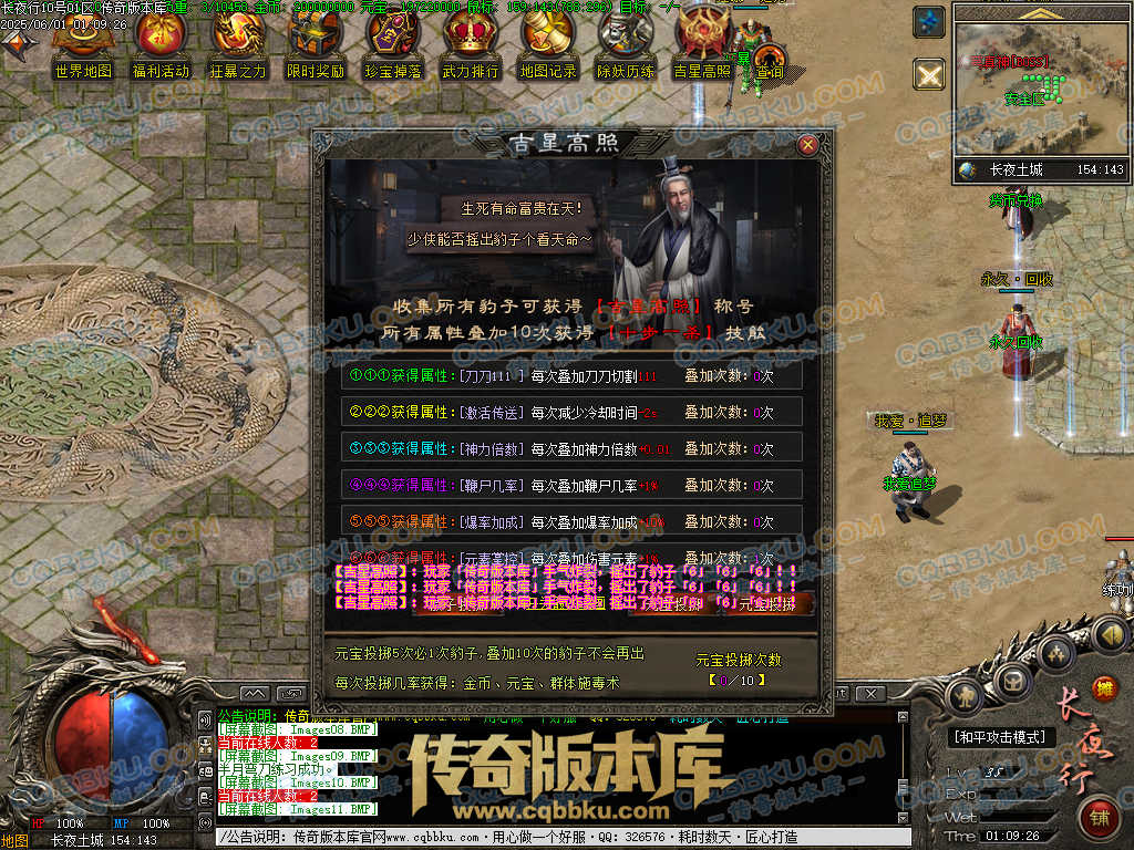 8.吉星高照npc可随机获得切割、元素、传送、神力、攻速等超多属性,起号必做!