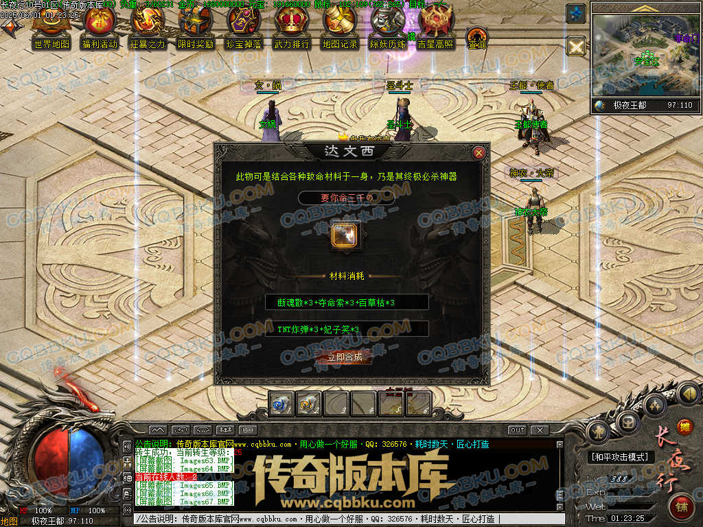 7.霸者大厅的封魔老人处可获得死亡の笔记,佩戴后可在综合服务处查看死亡记录(有怨报怨,有仇报仇,都记在小本本上)