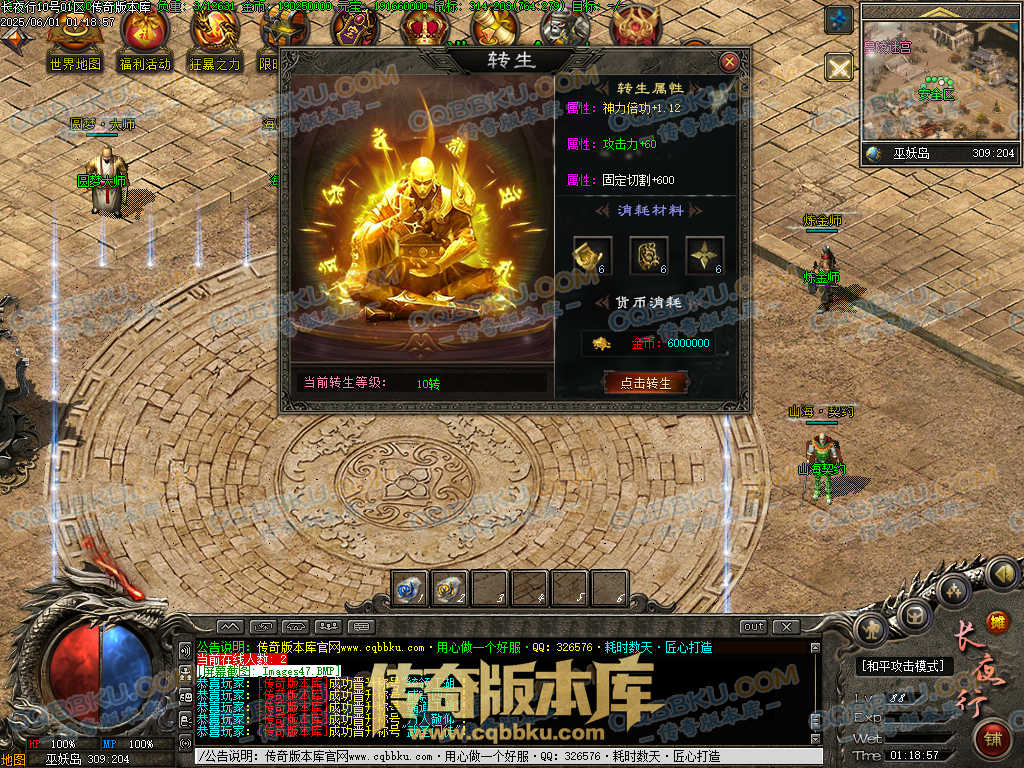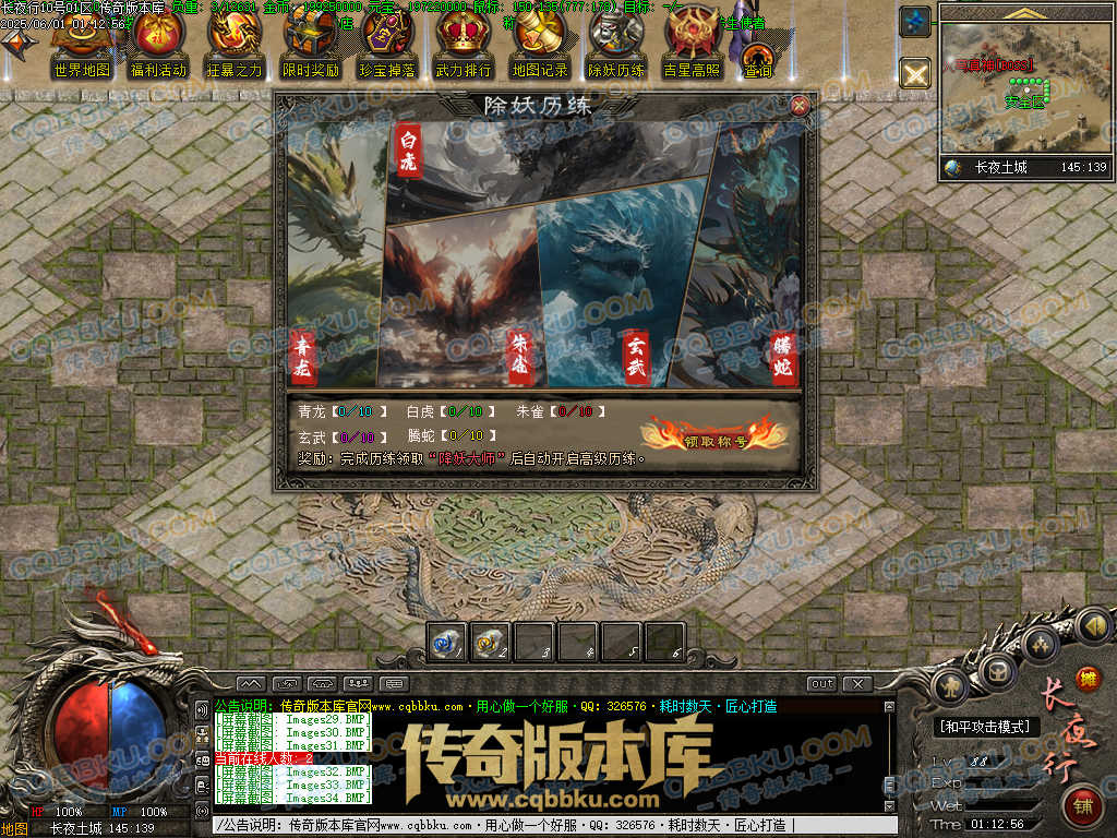 6.降妖历练,挑战可获得元素属性,以及攻速称号,高级历练可获全服唯一【全屏吸怪】!!