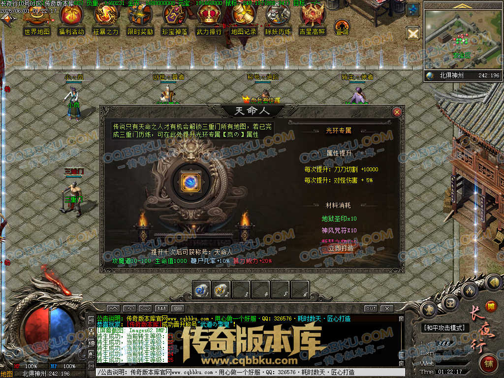 天命人称号 直接进入三重门击杀怪物掉落,地狱圣印,神风咒符,断梦之物,直接找(天命人)提升打造即可