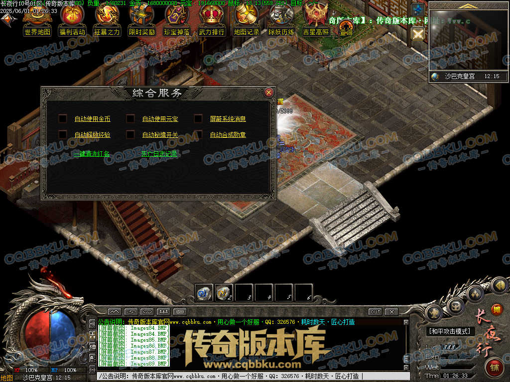 玩法介绍:本服为长期专属服,各种追梦超神器,背包专属、趣味称号,所有怪物掉落