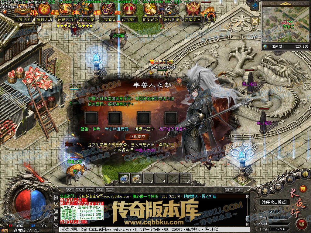 6.兽人会议厅处可提交一大陆专属【赤血魔剑】+【武装力量「审判」】,可获得赤血力量称号,武器幸运值永久+9 人物攻速永久+2!!!