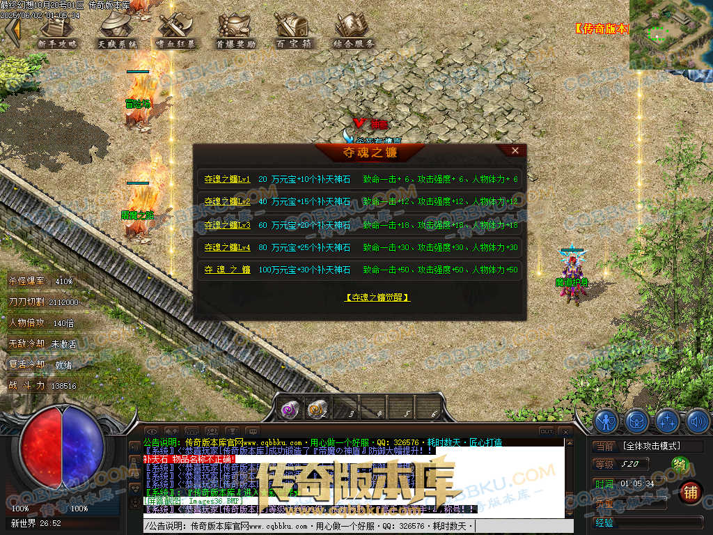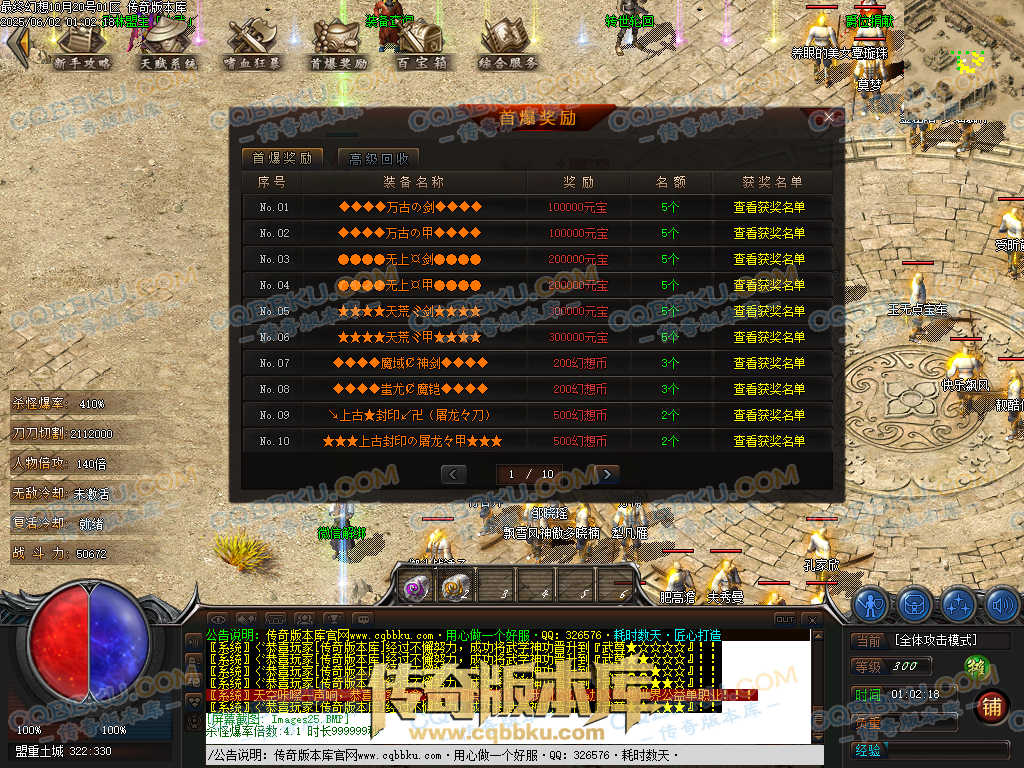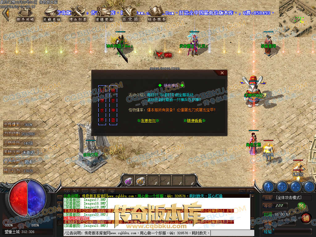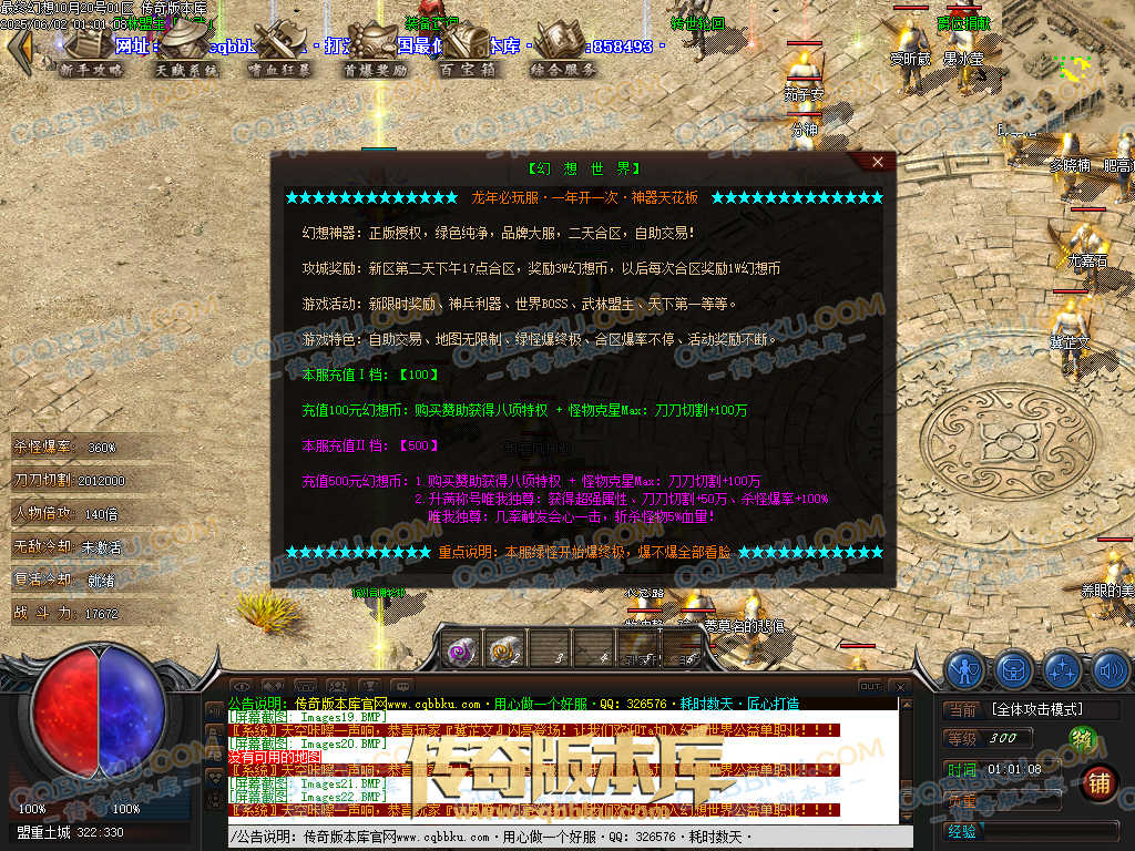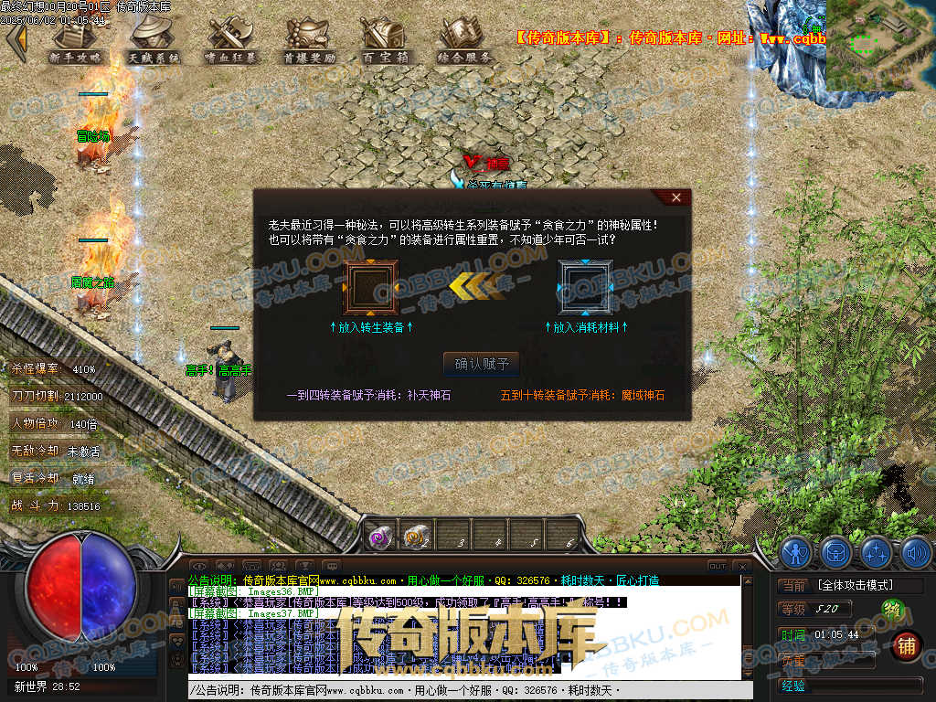 游戏特色:自助交易、地图无限制、绿怪爆终极、合区爆率不停、活动奖励不断。