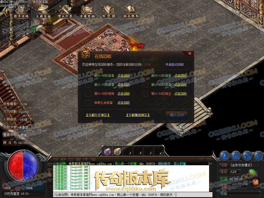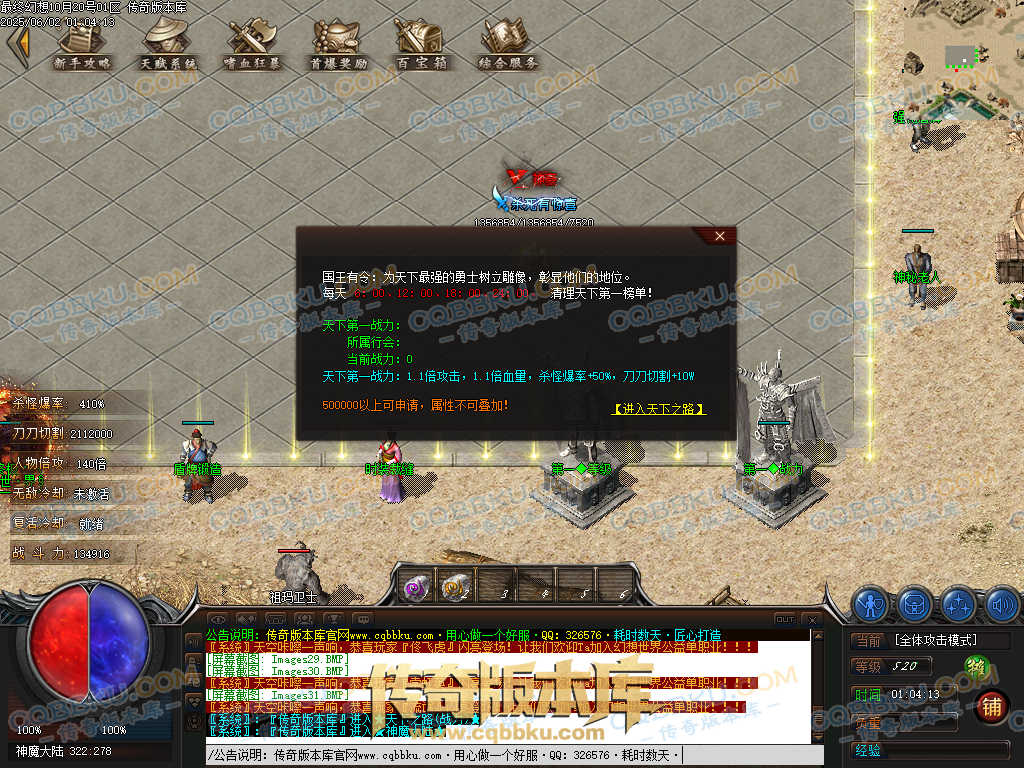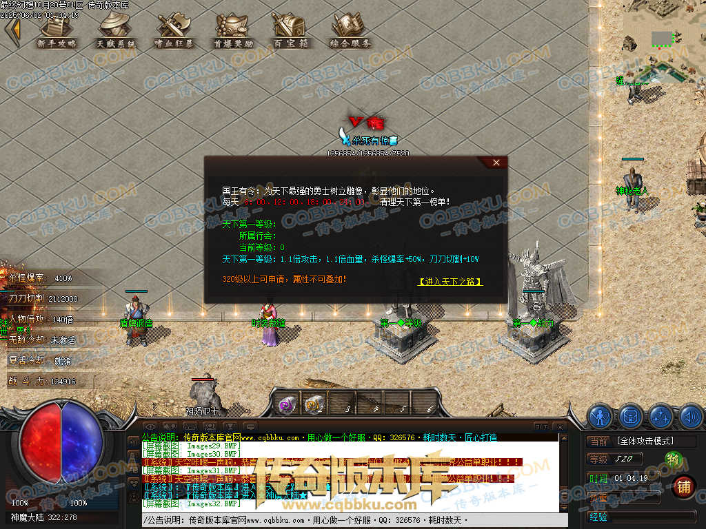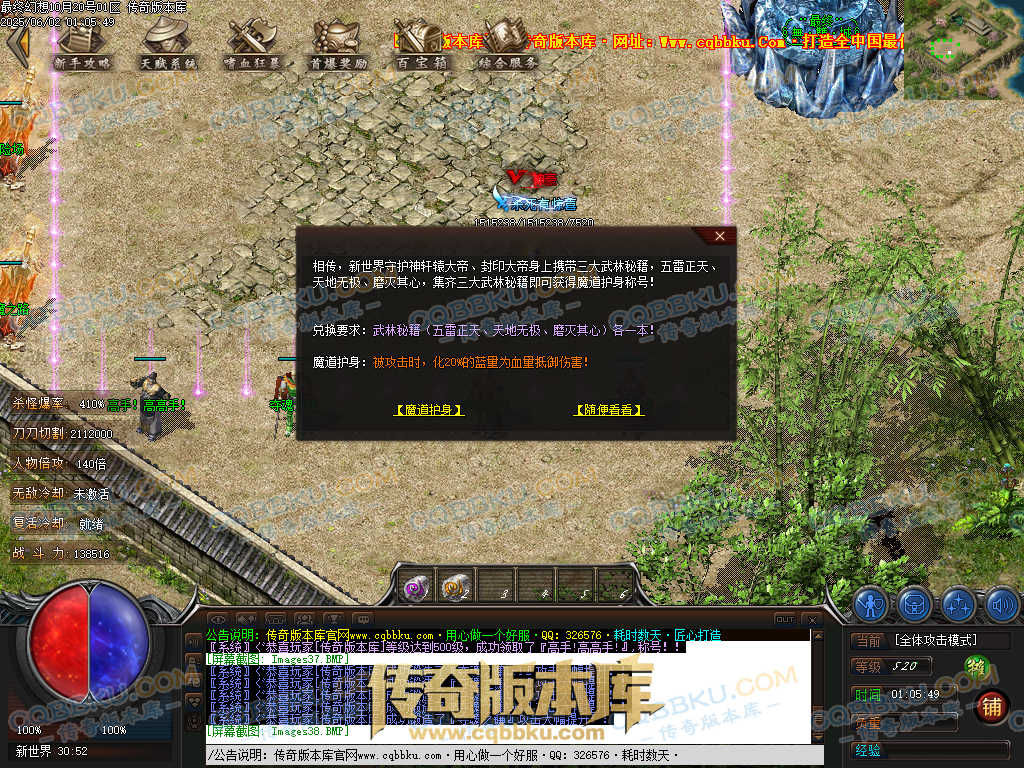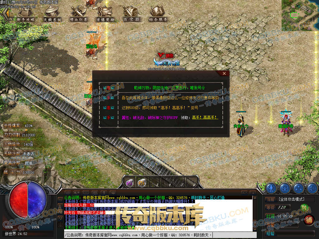 游戏特色:自助交易、地图无限制、绿怪爆终极、合区爆率不停、活动奖励不断。
