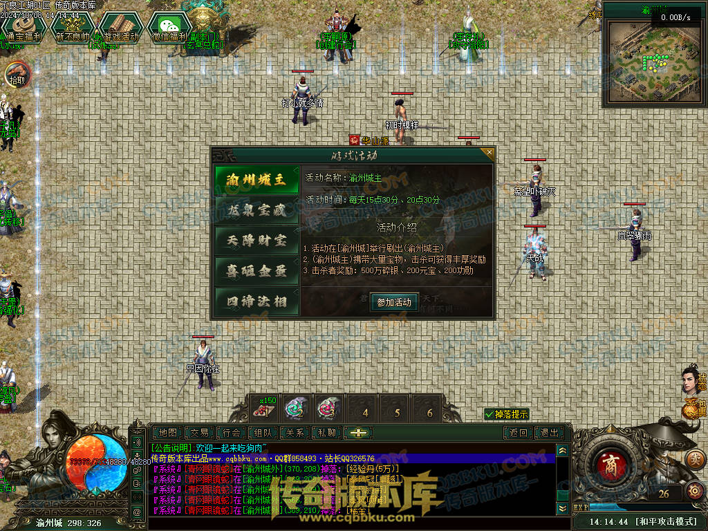 渝州城主 每天15点30分、20点30分 活动在[渝州城]举行刷出(渝州城主)
